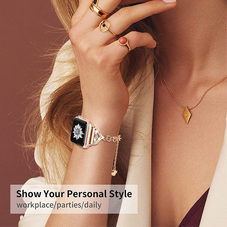 Entscheiden Sie sich für unser Stylisches Anhänger Design Armband für die Apple Watch Series 9 / 8 / 7 41mm / 6 / 5 / 4 / SE (2023) / SE (2022) / SE 40mm / 3 2 1 38mm und verleihen Sie Ihrer Smartwatch das gewisse Etwas. Hergestellt aus hochwertigem Edelstahl ist dieses Armband nicht nur besonders haltbar, sondern auch robust und widerstandsfähig gegen den täglichen Gebrauch. Es ist verstellbar und somit für verschiedene Handgelenksgrößen geeignet, was einen optimalen Tragekomfort gewährleistet. Mit mehreren stilvollen und filigranen Anhängern passt dieses Armband zu jedem Outfit und Anlass. Es ist die ideale Alternative zu Ihrem alten oder beschädigten Armband und zeigt Ihren guten Geschmack, während es gleichzeitig das Aussehen Ihrer Uhr aufwertet. Gönnen Sie sich ein Accessoire, das Funktionalität und Stil vereint!