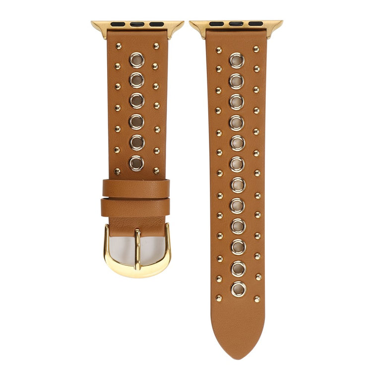 Entscheiden Sie sich für unser Rivets Uhrenarmband aus echtem Leder, das speziell für die Apple Watch Series 9 / 8 / 7 41mm / 6 / 5 / 4 / SE (2023) / SE (2022) / SE 40mm / 3 / 2 / 1 38mm entwickelt wurde. Dieses Armband bietet Ihnen nicht nur einen eleganten Look, sondern ist auch aus hochwertigem echtem Leder gefertigt, das angenehm zu tragen ist und sich mühelos in Ihr tägliches Outfit integrieren lässt. Das Material ist hautfreundlich und verursacht keine Allergien, sodass Sie es ohne Bedenken den ganzen Tag über tragen können. Der Uhrenverschluss besteht aus hochwertigem Material, das langlebig und strapazierfähig ist. Dank des durchdachten Mehrlochdesigns lässt sich die Größe des Armbands individuell anpassen, was zusätzlichen Komfort bietet. Es ist die ideale Wahl, um Ihr altes oder beschädigtes Armband zu ersetzen und eignet sich perfekt für verschiedene Anlässe, sei es bei der Arbeit, in der Freizeit oder im Alltag, sowohl für Frauen als auch für Männer. Gönnen Sie sich ein Stück Stil und Funktionalität mit diesem unverzichtbaren Zubehör für Ihre Smartwatch!