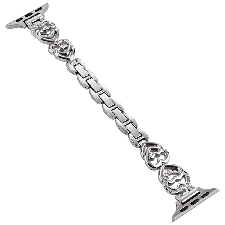 Entdecken Sie das elegante Armband mit Herzdesign und Rhinestone-Dekor, das perfekt für Ihre Apple Watch der Modelle 9, 8, 7, 6, 5, 4, SE (2023), SE (2022), SE, 3, 2 und 1 geeignet ist. Dieses gehobene Metallarmband vereint feine Verarbeitung mit einem komfortablen Tragegefühl und verleiht Ihrer Smartwatch einen stilvollen Akzent. Für Handgelenke mit einem Umfang von 160mm bis 220mm ist es die ideale Wahl zur Personalisierung Ihrer Uhr.