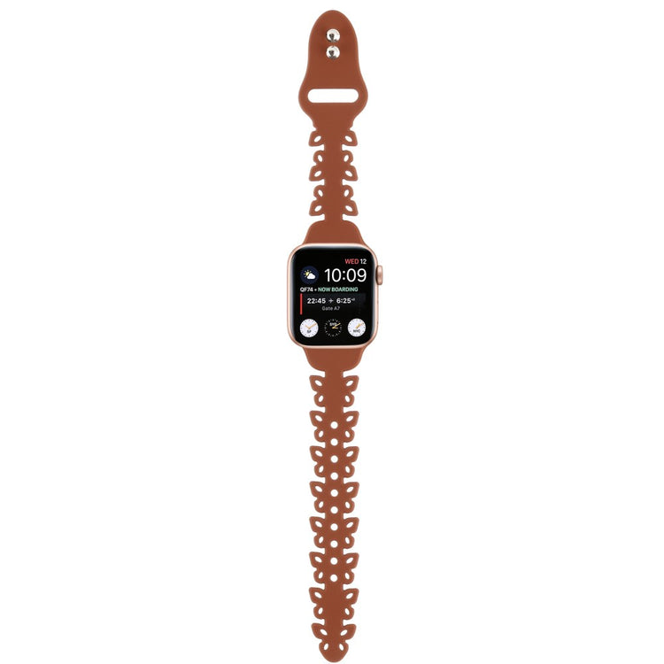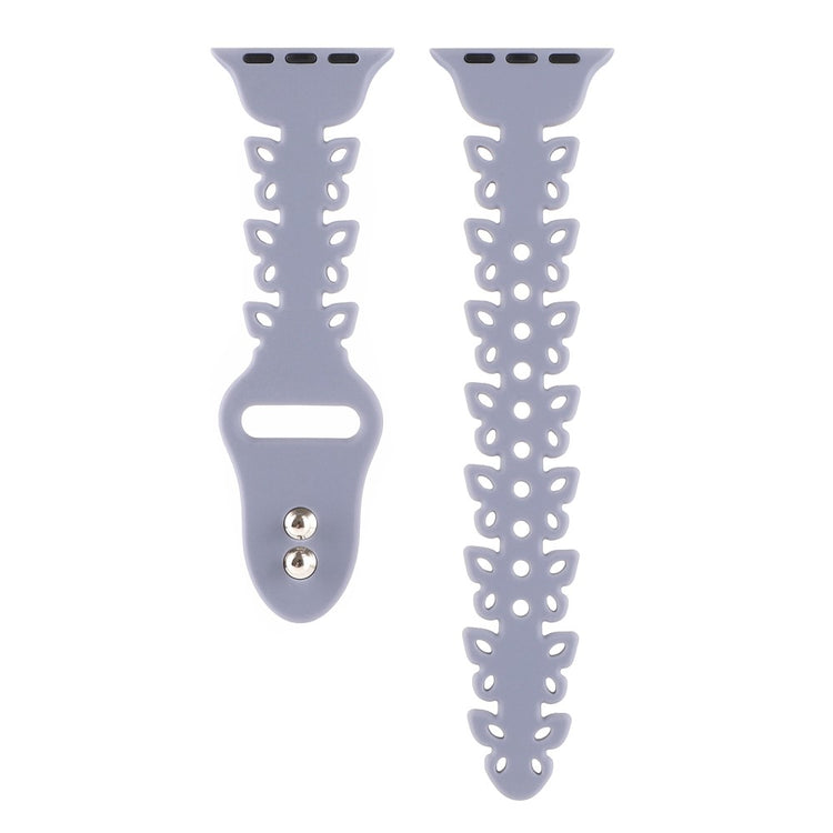Entscheiden Sie sich für unser Armband für die Apple Watch Series 9 / 8 / 7 41mm / 6 / 5 / 4 / SE (2022) / SE (2023) / SE 40mm / 3 / 2 / 1 38mm und profitieren Sie von zahlreichen Vorteilen! Dieses hochwertige Silikonmaterial sorgt nicht nur für Langlebigkeit, sondern auch für einen angenehmen Tragekomfort. Das hollow Design macht das Armband besonders atmungsaktiv, was es ideal für den täglichen Gebrauch macht. Mit der Schmetterlingsform wird Ihr Gerät zusätzlich stilvoll und elegant aufgewertet. Die vielfältigen Löcher ermöglichen eine einfache Größenanpassung und sorgen dafür, dass das Armband stets perfekt sitzt. Es ist der ideale Ersatz für Ihr altes oder defektes Armband und eignet sich sowohl für arbeitsbezogene als auch für freizeitliche Anlässe. So können Sie Ihre Apple Watch ganz nach Ihrem persönlichen Stil anpassen und dabei stets elegant und modern auftreten.