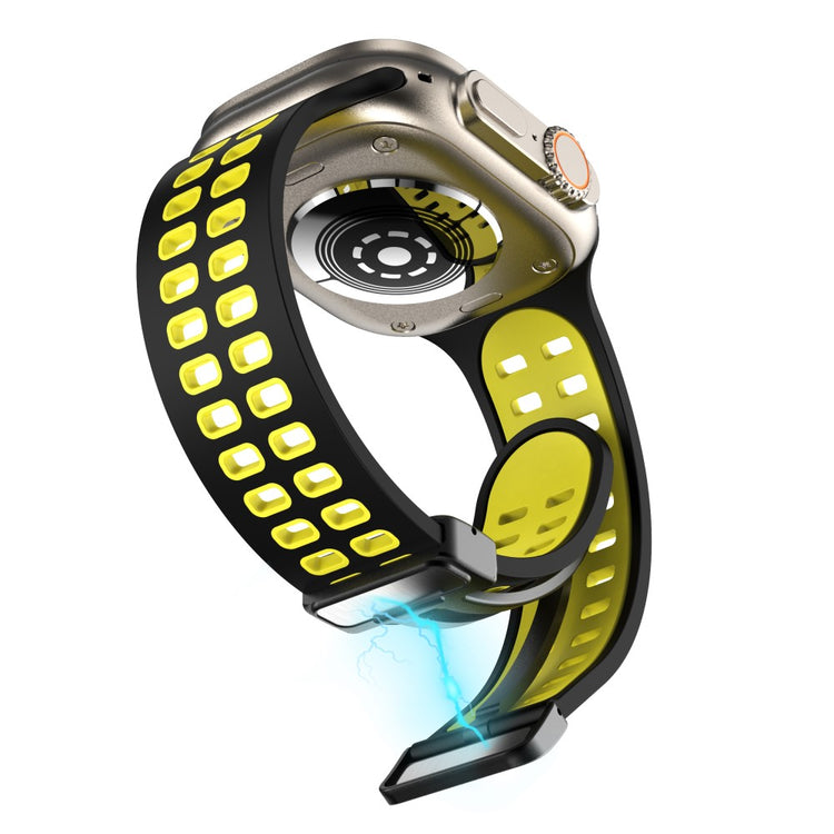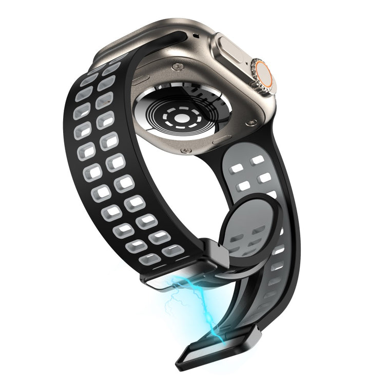 Entdecken Sie die perfekte Kombination aus Stil und Komfort mit unserem Magnetischen Band aus hochwertigem Silikon, speziell entwickelt für Ihre Apple Watch. Das weiche Material sorgt für ein angenehmes Tragegefühl, während das innovative magnetische Klappverschlussdesign das An- und Ablegen Ihres Uhrenarmbands zum Kinderspiel macht. Mit der praktischen doppelten Farbauswahl und den zahlreichen Löchern ist das Armband nicht nur leicht zu kombinieren, sondern auch eine ideale Wahl, um Ihren persönlichen Stil auszudrücken. Sollte Ihr altes Armband beschädigt oder abgenutzt sein, stellt dieses Armband die perfekte Ersatzlösung dar. Zudem lässt es sich schnell und einfach installieren und entfernen, sodass Sie im Handumdrehen Ihren Look verändern können. Das Armband ist für Handgelenke mit einem Umfang von 155-210 mm geeignet und wird daher eine breite Nutzerbasis begeistern. Warten Sie nicht länger und gönnen Sie Ihrer Apple Watch das Upgrade, das sie verdient!