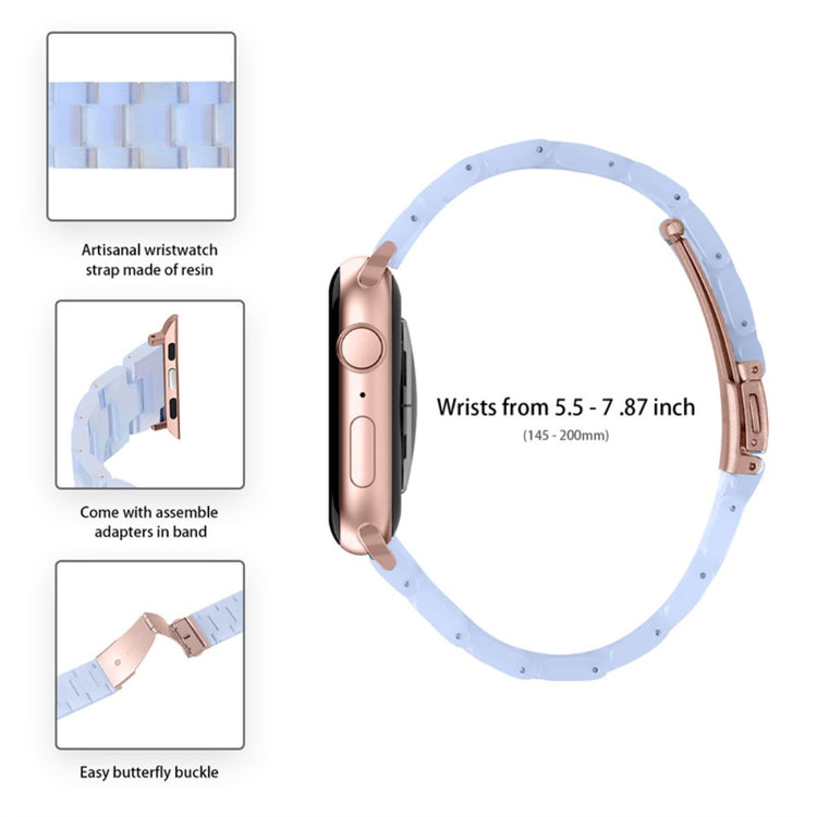 Entscheiden Sie sich für dieses Uhrenarmband aus hochwertigem Resin, das speziell für die Apple Watch Series 6 / 5 / 4 / SE / SE (2022) 40mm entwickelt wurde. Der hochwertige Materialien sorgt nicht nur für eine stilvolle Optik, sondern ist auch wasserdicht und rostfrei. Jedes Stück Resin wird von erfahrenen Handwerkern handpoliert, wodurch eine erstklassige Qualität gewährleistet wird. Das Armaband verfügt über einen flexiblen Design mit einem Edelstahladapter und einem Faltverschluss, was den einfachen Austausch und die Montage ermöglicht. Zudem bietet das enthaltene transparente Uhrengehäuse einen zuverlässigen Schutz für Ihre Uhr vor Sturz, Kratzern und anderen Schäden. Die einstellbare Größe eignet sich für einen Handgelenksumfang von 5,5 bis 7,87 Zoll (140-200 mm) und passt somit zu verschiedenen Handgelenken. Mit diesem Zubehör setzen Sie nicht nur auf Funktionalität, sondern auch auf Stil und Schutz für Ihre Apple Watch!