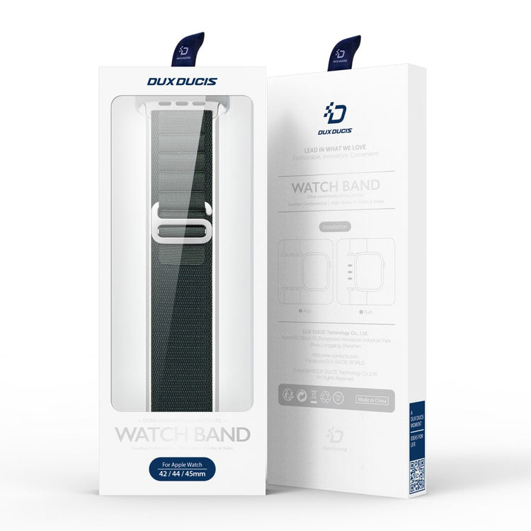 Entdecken Sie den DUX DUCIS GS Series als perfekten Ersatz für Ihr altes, beschädigtes Armband! Dieses hochwertige Polyesterarmband ist nicht nur strapazierfähig, sondern auch atmungsaktiv und sorgt für hohen Tragekomfort, egal ob im Büro oder beim Sport. Dank der praktischen Edelstahl-Schließe lässt sich die Größe des Armbandes mühelos anpassen, was eine ideale Passform für nahezu jedes Handgelenk ermöglicht. Mit einer Länge von 255+25mm und einer Verschlussbreite von 34mm ist dieses Armband passend für verschiedene Apple Watch Modelle. Die Installation und Entfernung sind kinderleicht, sodass Sie im Handumdrehen den Look Ihrer Smartwatch ändern können. Investieren Sie in den DUX DUCIS GS Series und verleihen Sie Ihrer Uhr einen neuen, modernen Look!