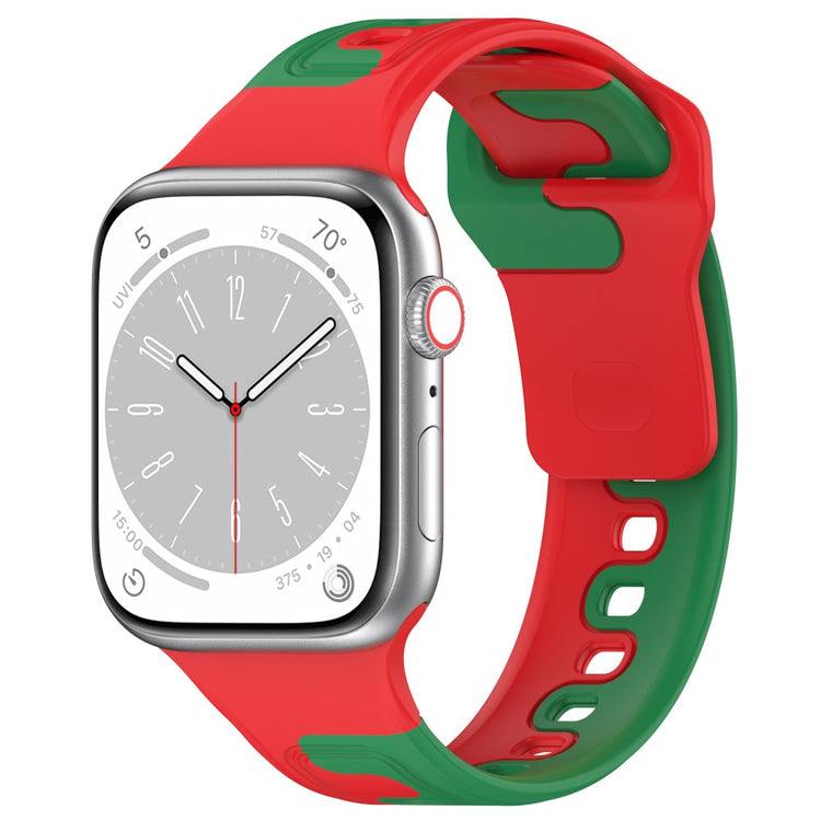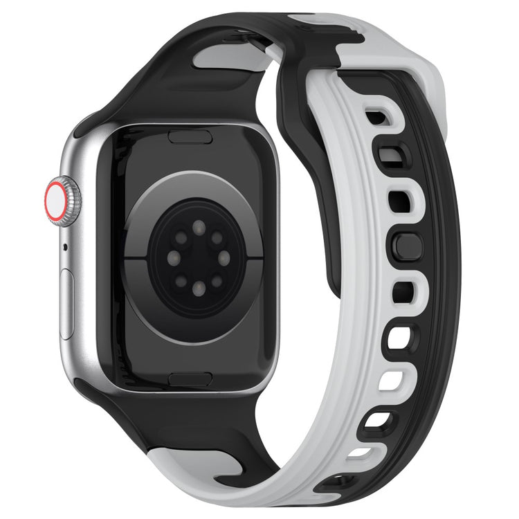 Entscheiden Sie sich für unser hochwertiges Dual-Color-Silikonarmband für Ihre Apple Watch und erleben Sie den perfekten Mix aus Funktionalität und Stil. Dieses Armband ist aus hochwertigem Silikon gefertigt, was es besonders weich und komfortabel zu tragen macht. Dank des sportlich-eleganten Designs wird Ihre Apple Watch zu einem echten Blickfang, egal ob im Alltag oder beim Sport. Die cleveren Vielzahl an Löchern ermöglicht eine einfache Größenanpassung, sodass das Armband optimal an Ihr Handgelenk angepasst werden kann. Es ist die ideale Alternative zu Ihrem alten oder defekten Armband und bietet eine leichte Handhabung mit einem Gewicht von nur 17g. Das Armband hat eine Länge von 95mm + 133mm und ist für Handgelenke mit einem Umfang von 5,1" bis 8,5" geeignet. Gönnen Sie Ihrer Apple Watch den Komfort und die Individualität, die sie verdient!