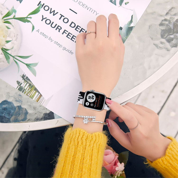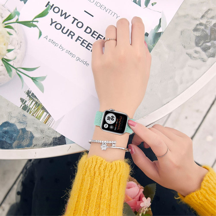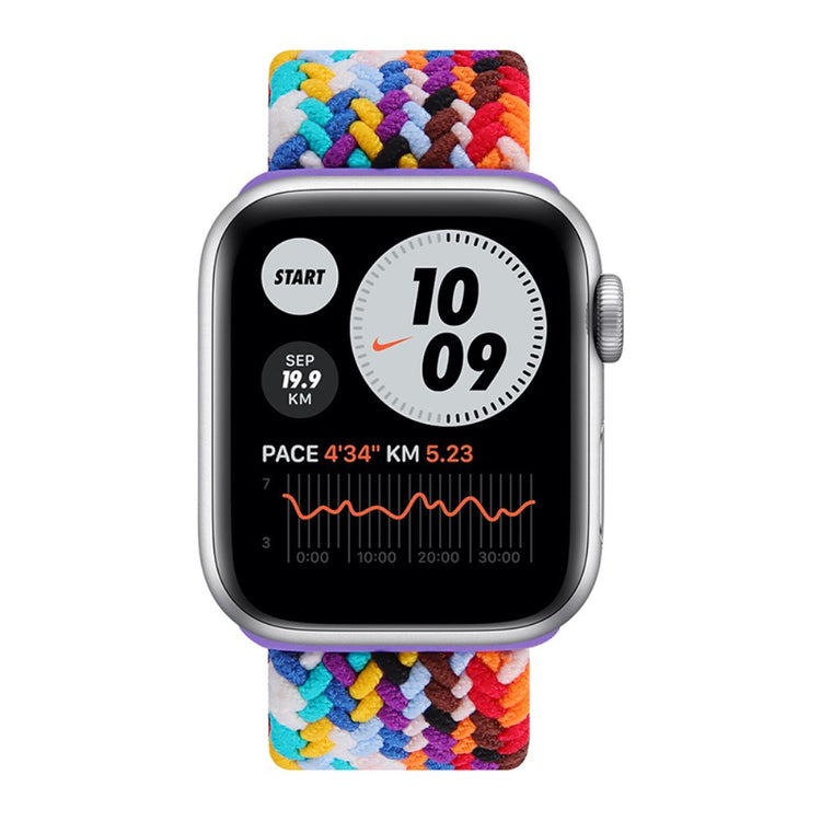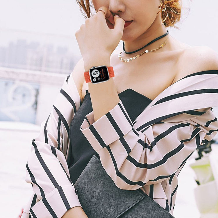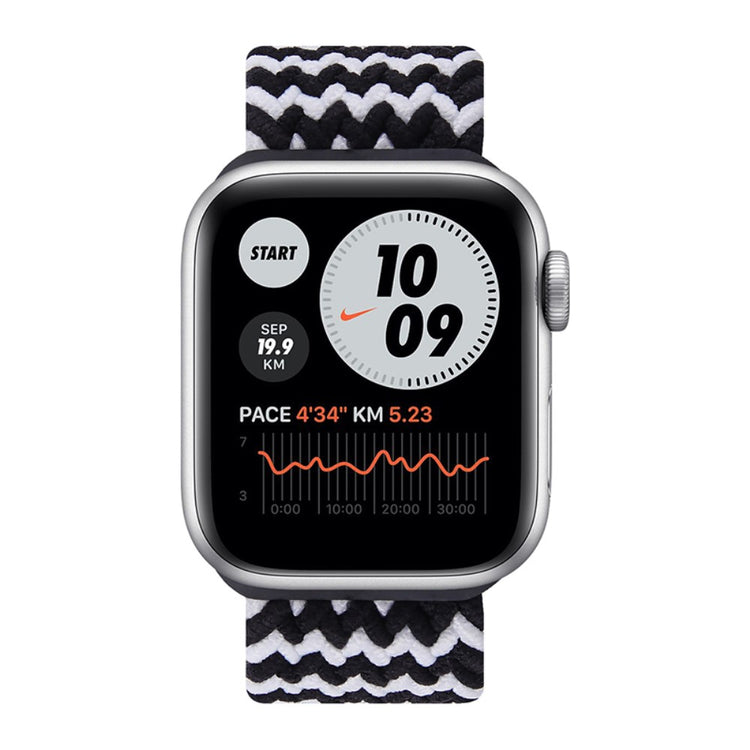 Dieses elastische, geflochtene Uhrenarmband ist der perfekte Ersatz für Ihr Apple Watch Armband. Hergestellt aus hautfreundlichem Material, ist es langlebig, atmungsaktiv und leicht. Genießen Sie höchsten Tragekomfort dank des elastischen Designs ohne Schnalle.