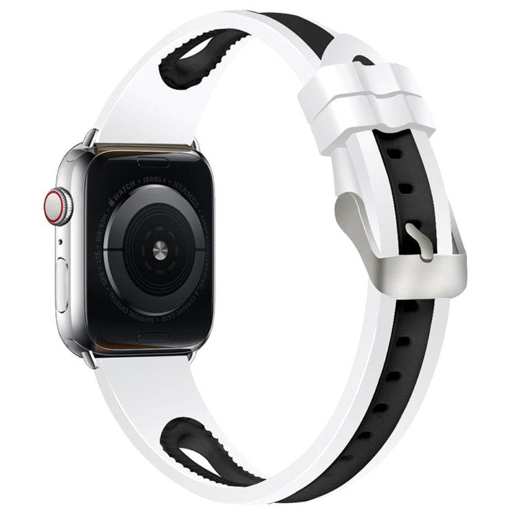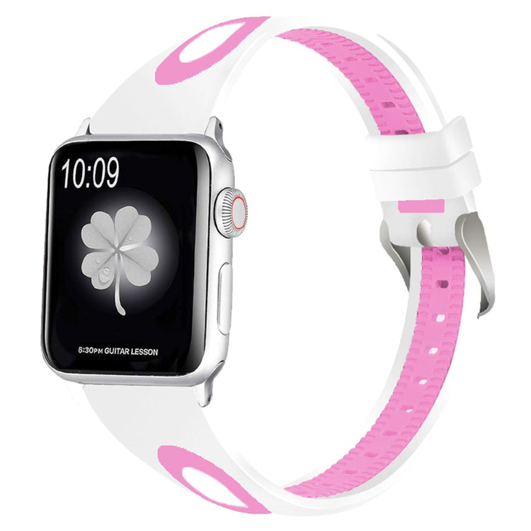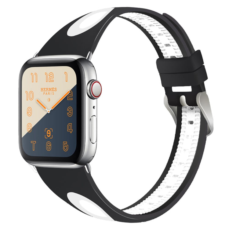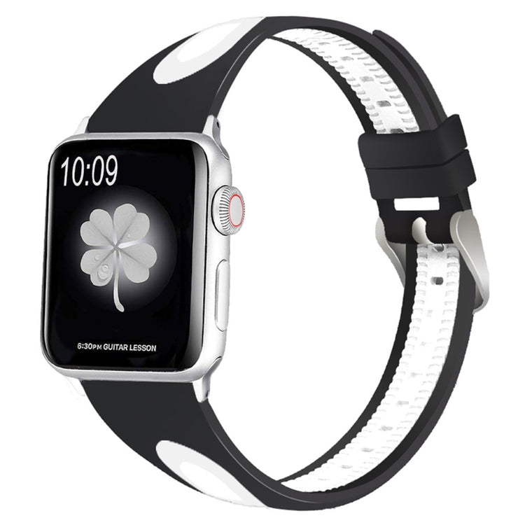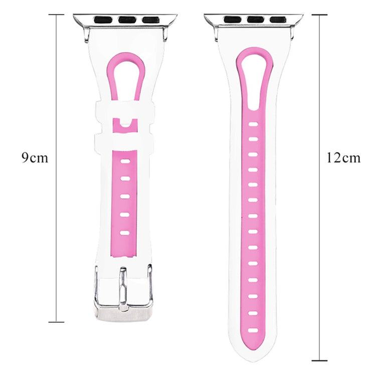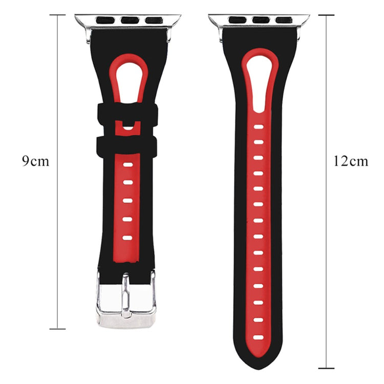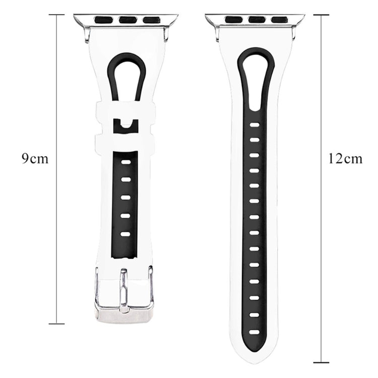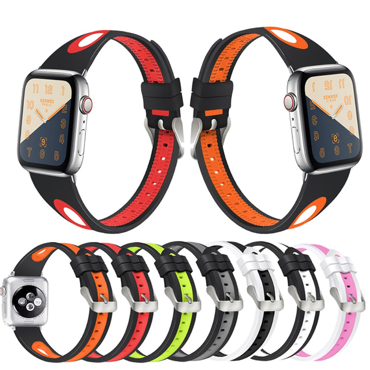 Dieses zweifarbige Sport-Armband verleiht Ihrer Apple Watch einen modernen Look. Das weiche Silikonmaterial mit Luftlöchern sorgt für eine schnelle Wärmeableitung und ein angenehmes Tragegefühl.