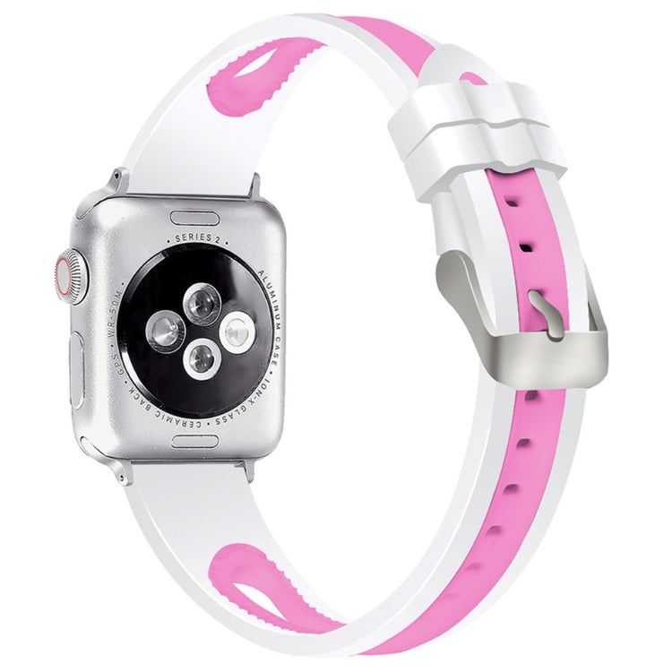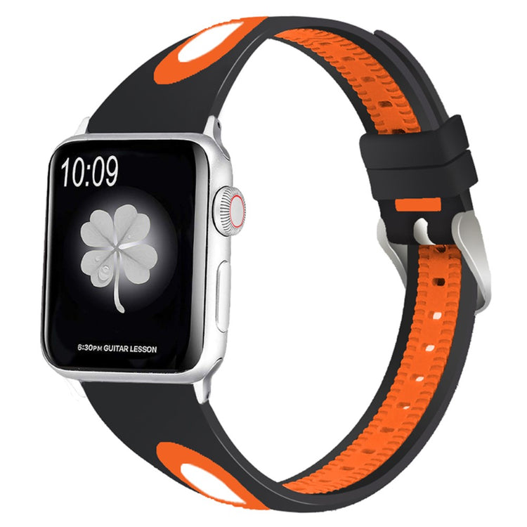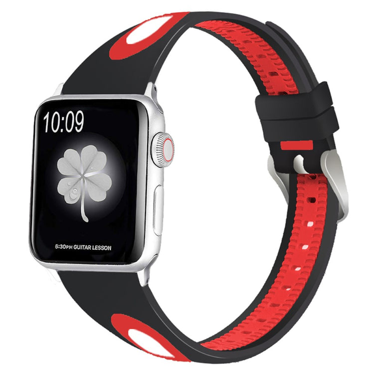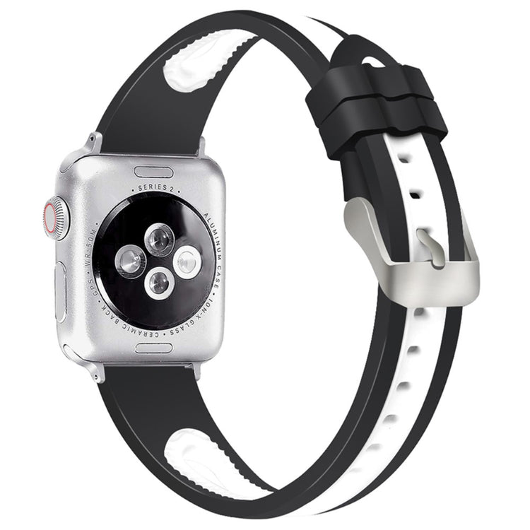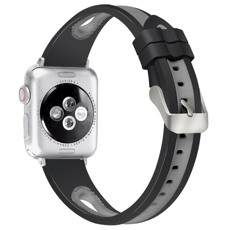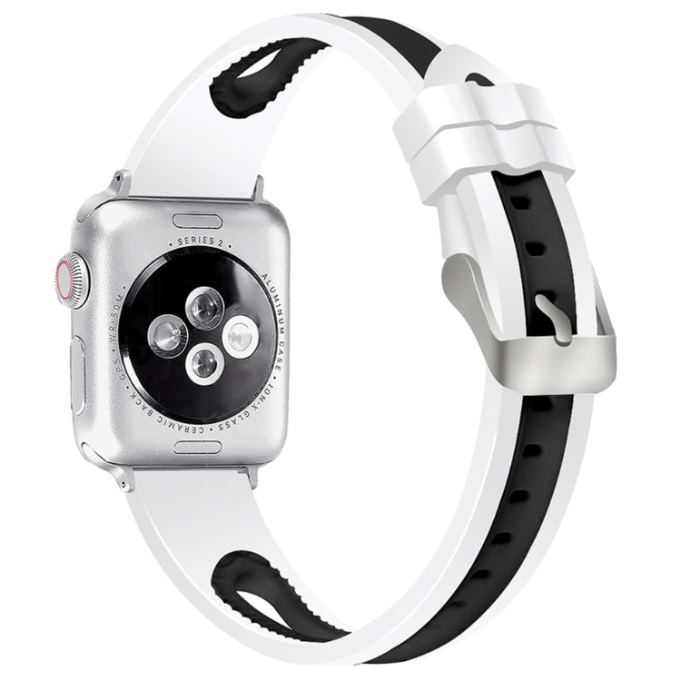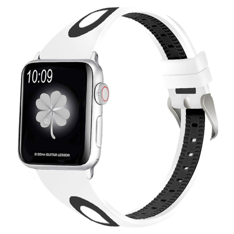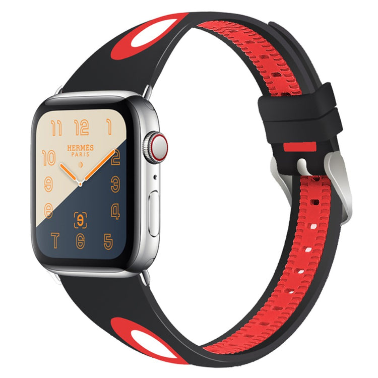Dieses zweifarbige Sport-Armband verleiht Ihrer Apple Watch einen modernen Look. Das weiche Silikonmaterial mit Luftlöchern sorgt für eine schnelle Wärmeableitung und ein angenehmes Tragegefühl.