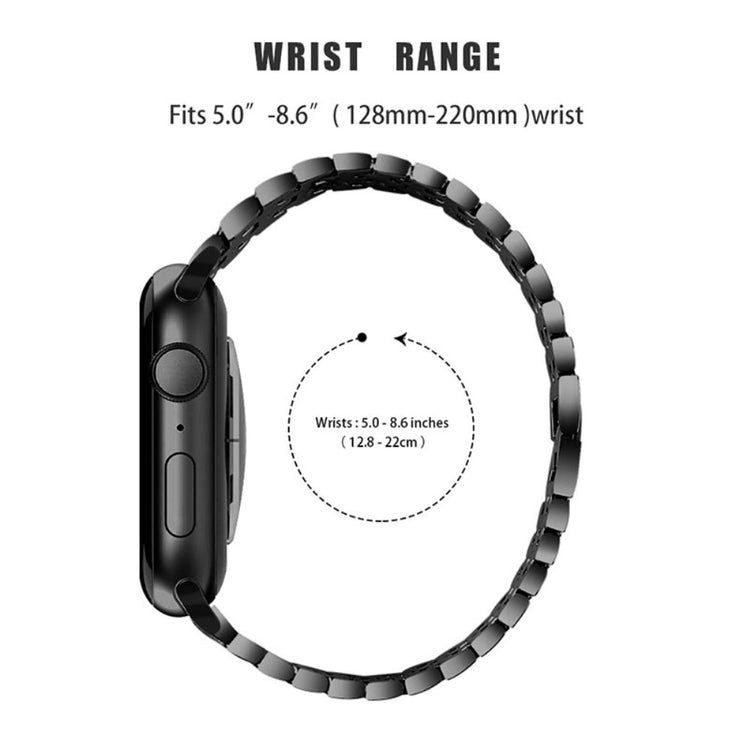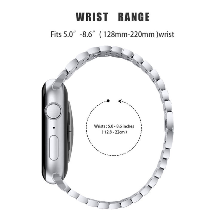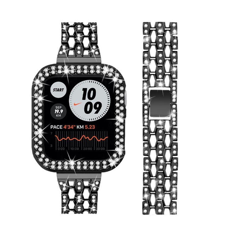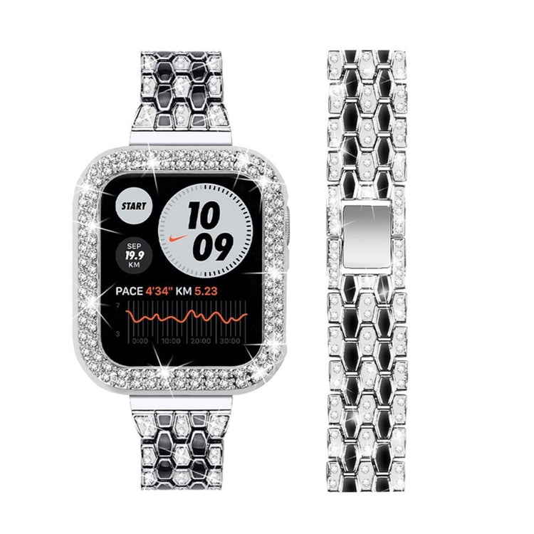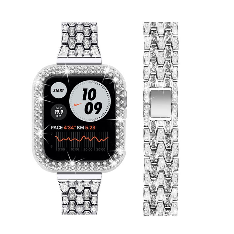 Entscheiden Sie sich für unser Five Beads Metal Watch Strap Rhinestone Decor Replacement + Protective Case für die Apple Watch Series 7 41mm und verleihen Sie Ihrem Smartwatch-Look eine neue Dimension. Die robuste und langlebige Metallband gewährleistet nicht nur Sicherheit, sondern auch einen stilvollen Auftritt. Mit dem widerstandsfähigen PC-Schutzhülle schützen Sie Ihr Gerät effektiv vor Kratzern und Abnutzung. Die einzigartigen, schimmernden Rhinestone-Dekorationen verleihen Ihrer Uhr Eleganz und Individualität. Dieses Armband ist die ideale Ersatzlösung für Ihr altes, defektes Band und spricht für Ihren exzellenten Geschmack. Darüber hinaus passt es sich einem Handgelenksumfang von 5,0 bis 8,6 Zoll an, sodass es für die meisten Träger perfekt geeignet ist. Machen Sie Ihre Apple Watch mit diesem außergewöhnlichen Armband noch ansprechender!