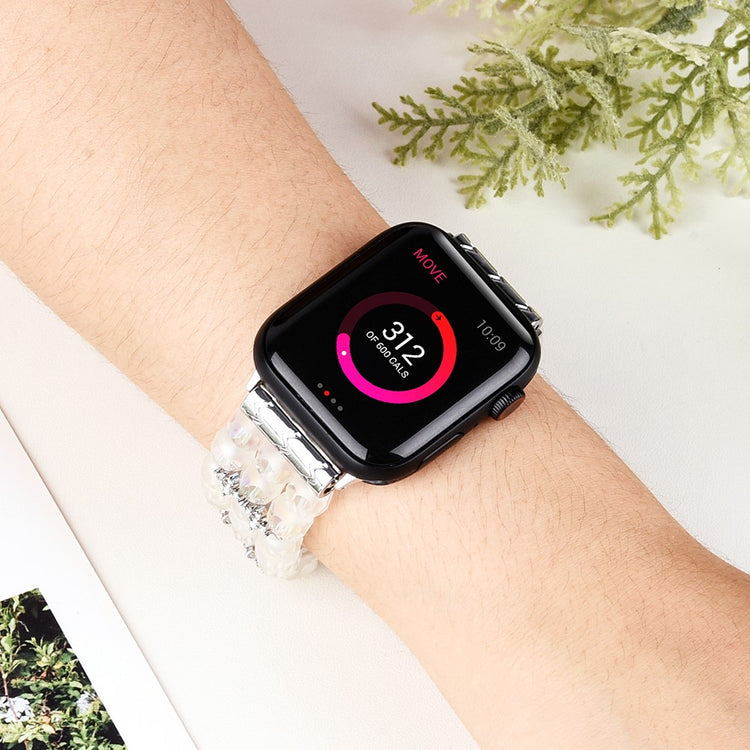 Rigtigt hårdfør Apple Watch Series 7 41mm Rhinsten Rem - Hvid#serie_4