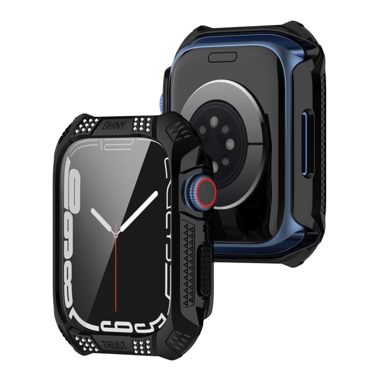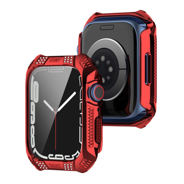 Schützen Sie Ihre Apple Watch Series 9 / 8 / 7 mit unserem hochwertigen Rhinestone Rhombus Imprint Elektroplating Hart-PC Case inklusive gehärtetem Glas-Schutzfolien! Dieses Case bietet einen umfassenden Schutz, da es nicht nur den Bildschirm, sondern auch die gekrümmten Kanten Ihrer Uhr vollständig abdeckt. Hergestellt aus PC-Material, fühlt sich das Gehäuse angenehm und glatt an, während das elektroplattierte Design für einen modischen und stilvollen Look sorgt. Dank des praktischen Designs haben Sie jederzeit Zugriff auf alle Kontrollen, Tasten, Sensoren und Funktionen Ihrer Uhr, ohne dabei Abstriche bei der Benutzerfreundlichkeit zu machen. Die präzisen Aussparungen garantieren, dass das Cover perfekt auf Ihre Uhr passt. Zudem schützt die mitgelieferte gehärtete Glas-Schutzfolie die Oberfläche Ihrer Uhr optimal. Diese ultra-dünne Folie sorgt für eine schnelle Reaktion auf Berührungen. Die Installation ist dank des Snap-On-Designs unkompliziert, sodass das Abnehmen der Armbänder nicht nötig ist. Gönnen Sie Ihrer Apple Watch den Schutz, den sie verdient!