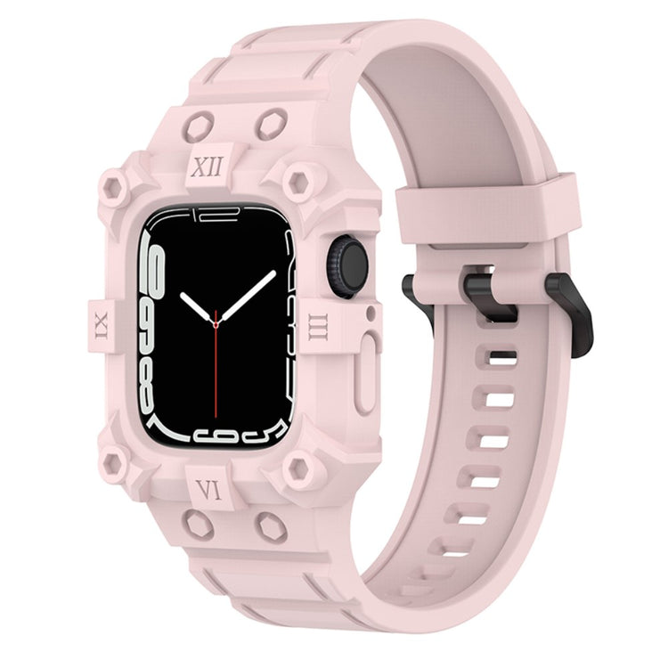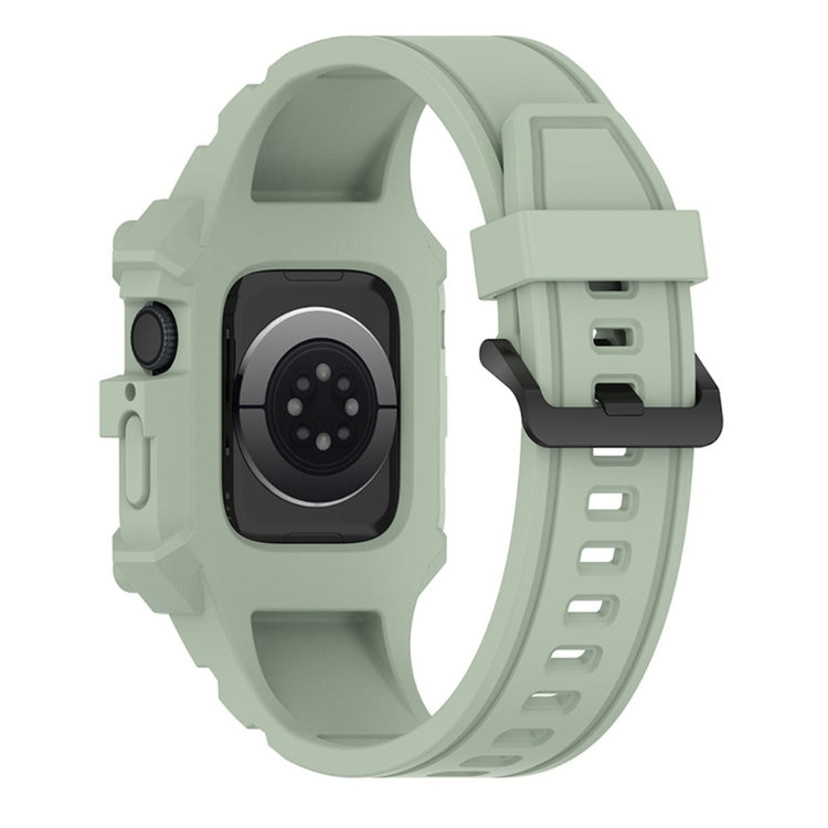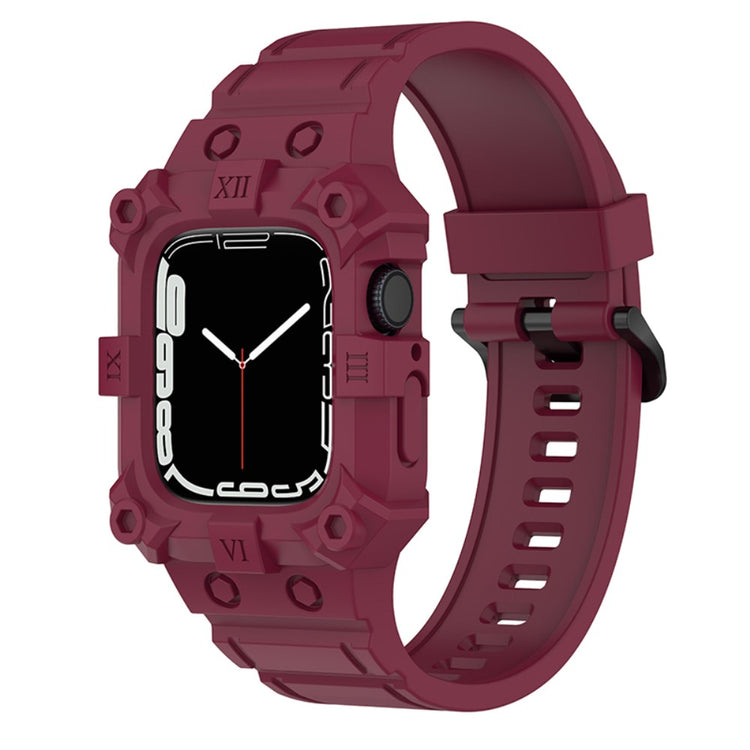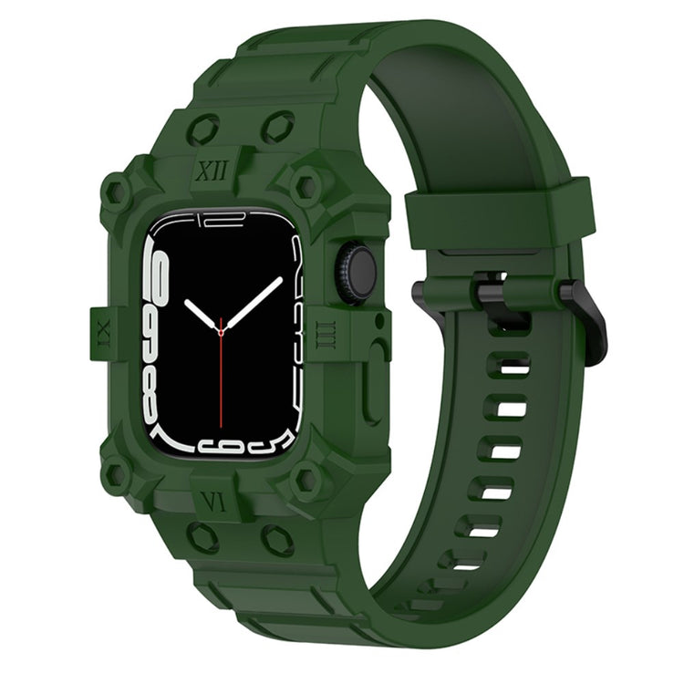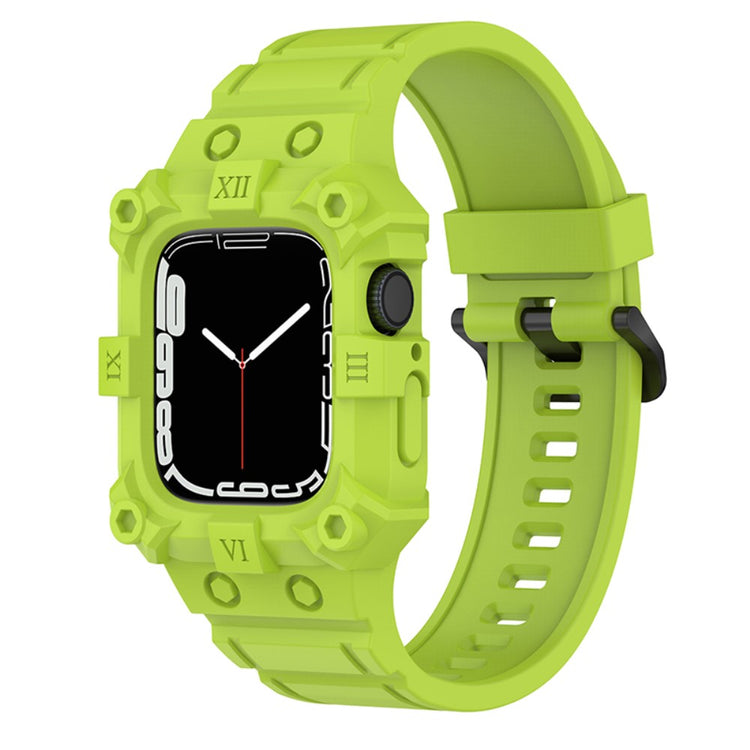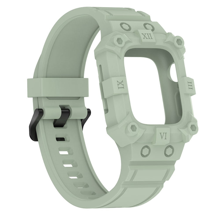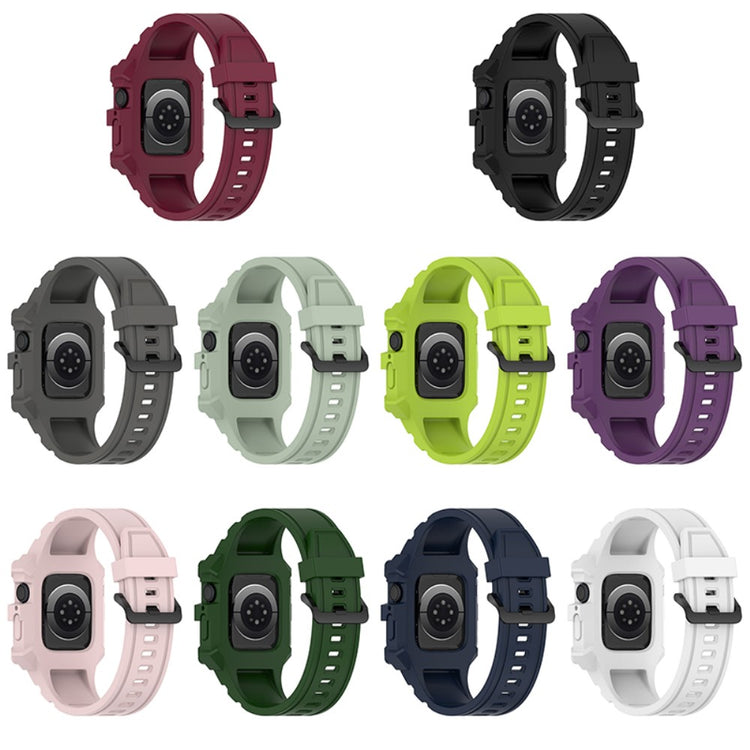 Diese Silikonhülle mit Armband ist kompatibel mit der Apple Watch Series 9 / 8 / 7 41mm / 6 / 5 / 4 / SE (2023) / SE (2022) / SE 40mm / 3 / 2 / 1 38mm. Sie besteht aus umweltfreundlichem und strapazierfähigem Silikonmaterial und bietet optimalen Schutz für Ihre Smartwatch.