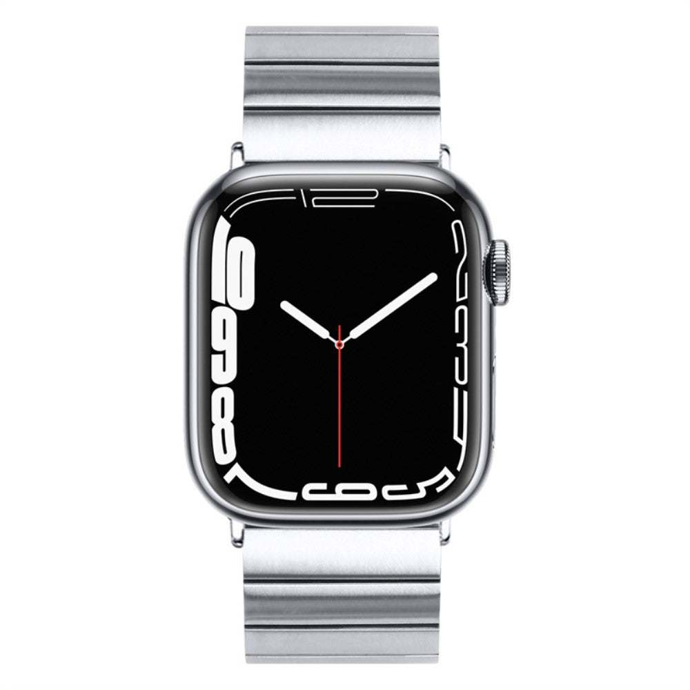 Entscheiden Sie sich für unser Edelstahl-Armband für die Apple Watch Series 9 / 8 / 7 41mm / SE (2023) / SE / SE (2022) / 6 / 5 / 4 40mm / 3 / 2 / 1 38mm und profitieren Sie von mehreren Vorteilen. Hergestellt aus verschleißfestem und haltbarem Edelstahl, bietet dieses Armband nicht nur eine lange Lebensdauer, sondern schützt Ihre Uhr auch effektiv vor Kratzern. Sein elegantes Design macht es zur perfekten Wahl für sowohl geschäftliche als auch legere Anlässe, sodass Sie mit Stil auftreten können, egal ob in einem Meeting oder beim Treffen mit Freunden. Falls Ihr aktuelles Armband beschädigt oder abgenutzt ist, ist dies die ideale Ersatzlösung. Das ansprechende Aussehen ist geeignet für Menschen jeden Alters, von Jugendlichen über Erwachsene bis hin zu Senioren. Mit einer Größe von 18,4 cm und einer Breite von 22 mm passt es bequem an Handgelenke mit einem Umfang von 5,5 bis 8,6 Zoll. Gönnen Sie sich das hochwertige Armband und verleihen Sie Ihrem Handgelenk ein neues, stilvolles Erscheinungsbild.