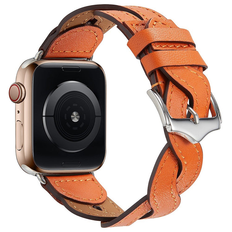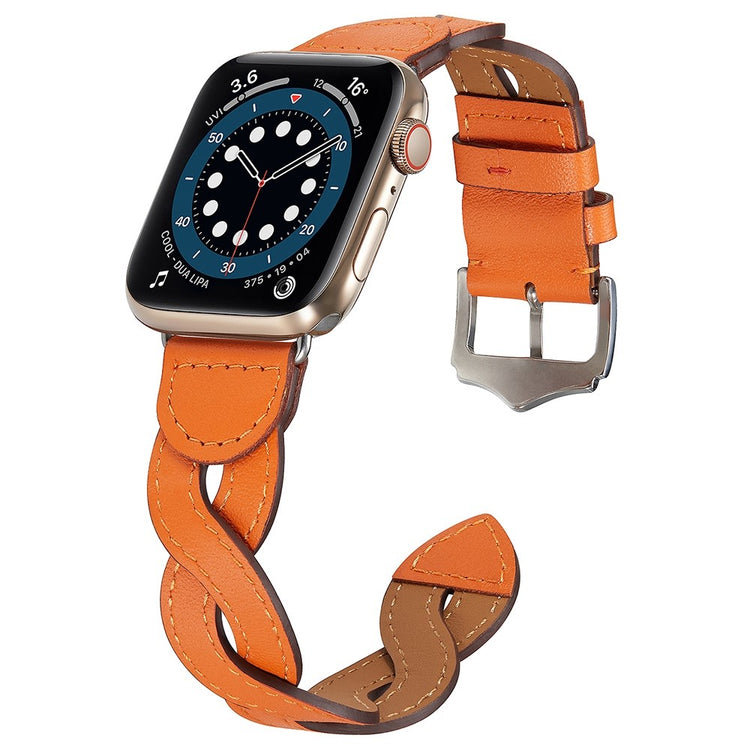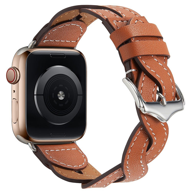 Entscheiden Sie sich für unser erstklassiges Armband A030 für die Apple Watch Series 9 / 8 / 7 41mm / 6 / 5 / 4 / SE (2023) / SE(2022) / SE 40mm / 3 / 2 / 1 38mm und genießen Sie die Vorteile eines stilvollen und funktionalen Designs. Hergestellt aus Top-Leder bietet dieses Armband ein höchsten Tragekomfort dank seiner weichen und angenehmen Beschaffenheit. Das elegante, geflochtene Design macht Ihre Uhr zu einem echten Blickfang und verleiht Ihrem Outfit eine besondere Note. Sie können die Größe dank der metallenen Schnalle ganz einfach anpassen, was optimale Passform und Komfort gewährleistet. Zudem ist es die ideale Alternative für ein altes oder beschädigtes Armband. Die Montage und Demontage ist kinderleicht, was Ihnen Zeit und Mühe spart. Investieren Sie in Qualität und Stil mit diesem einzigartigen Armband.
