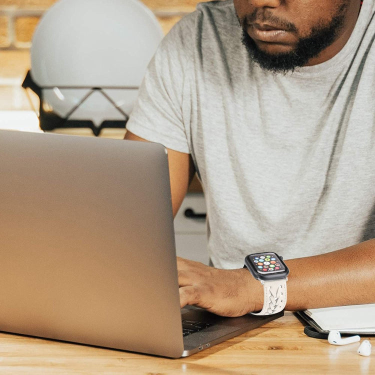 Verleihen Sie Ihrer Apple Watch mit unserem stilvollen, gewobenen Smartwatch-Armband aus hochwertigem Microfaser-Leder einen neuen Look! Dieses Armband ist nicht nur elegant, sondern auch äußerst langlebig und verschleißfest, was es zu einer perfekten Wahl für den täglichen Gebrauch macht. Die clever gestalteten Löcher ermöglichen eine einfache Anpassung an Ihr Handgelenk, sodass Sie jederzeit den optimalen Tragekomfort genießen können. Der Metallverschluss aus rostfreiem Edelstahl sorgt dafür, dass das An- und Ablegen des Armbands mühelos vonstattengeht. Dieses Armband ist eine ideale Alternative zu Ihrem alten, defekten Armband und verleiht Ihrer Uhr eine frische, moderne Ausstrahlung. Mit einer Handgelenkgröße von 14,4 bis 20,2 cm passt es sich perfekt an die meisten Träger an. Gönnen Sie sich und Ihrer Apple Watch dieses außergewöhnliche Armband und setzen Sie ein stilvolles Statement!