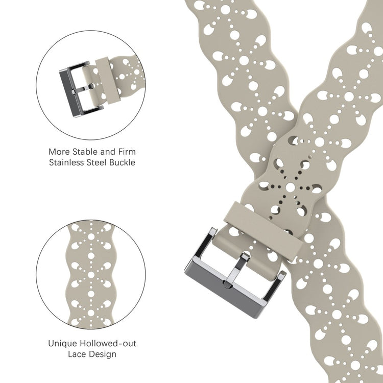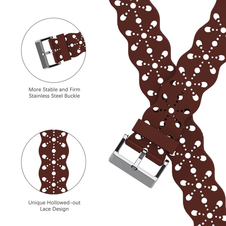 Dieses Armband für die Apple Watch bietet ein stilvolles Hollow-out Blumenmuster und besteht aus umweltfreundlichem Silikonmaterial, das wasserdicht und schweißresistent ist. Es ist einfach anzupassen, bequem zu tragen und verfügt über einen klassischen Pinverschluss für einfaches An- und Ablegen. Ein ideales Ersatzband, um Ihre alte oder defekte Uhr zu ersetzen und verschiedenen Stilbedürfnissen gerecht zu werden.