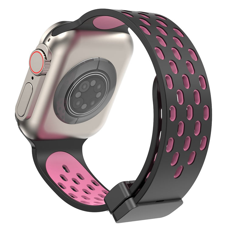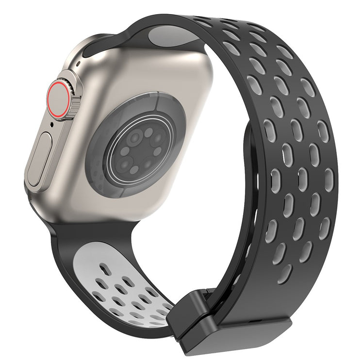 Entdecken Sie das perfekte Zubehör für Ihre Apple Watch mit unserem Magnetischen Uhrenarmband. Hergestellt aus hochwertigem Silikon, bietet dieses Band nicht nur einen außergewöhnlichen Tragekomfort, sondern lässt sich auch mühelos mit Ihrer täglichen Kleidung kombinieren. Die Hautverträglichkeit des Materials sorgt dafür, dass es keinerlei Allergien auslöst und somit für jeden geeignet ist. Der premium Uhrenverschluss ist langlebig und robust, garantiert eine lange Lebensdauer Ihres Armbands. Durch das faltbare Magnetverschluss-Design wird das An- und Ablegen Ihrer Uhr zum Kinderspiel. Die multiple Löcher-Design mit einem quadratischen Dornverschluss ermöglicht eine bequeme Anpassung der Größe, sodass das Armband optimal sitzt. Es ist die ideale Wahl, um Ihr altes oder defektes Band zu ersetzen. Egal ob bei der Arbeit, in der Freizeit oder bei anderen täglichen Anlässen – dieses Armband ist für Frauen und Männer gleichermaßen geeignet und verleiht Ihrer Apple Watch das gewisse Etwas.