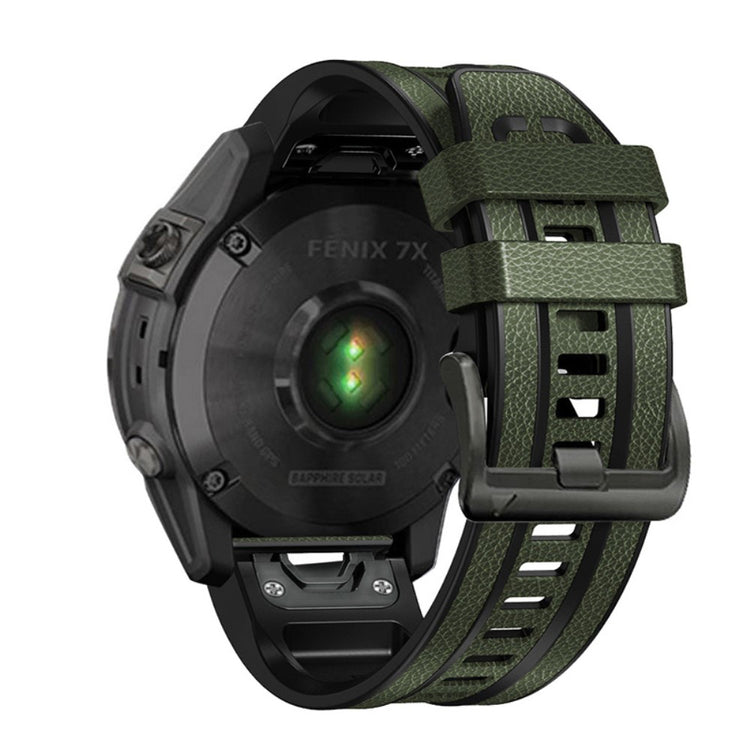 Der Garmin Fenix 7X Quick Release Lederbeschichteter Silikon-Uhrenarmband Ersatz bietet Ihnen zahlreiche Vorteile, die ihn zur idealen Wahl für Ihre Smartwatch machen. Hergestellt aus hochwertigem Leder und Silikon, ist dieses Armband nicht nur besonders langlebig, sondern auch bequem zu tragen, sodass es sich ideal für den täglichen Gebrauch eignet. Der klassische Pin-Schließe sorgt dafür, dass Ihr Smartwatch-Armband sicher an Ort und Stelle bleibt, während die verstellbaren Löcher es Ihnen ermöglichen, das Armband ganz einfach an Ihre individuelle Handgelenksgröße anzupassen. Wenn Sie ein altes oder defektes Armband ersetzen möchten, ist dies die perfekte Lösung. Darüber hinaus stehen Ihnen verschiedene Farben zur Verfügung, um Ihre persönlichen Vorlieben und Bedürfnisse zu erfüllen. Genießen Sie die Kombination aus Stil, Komfort und Funktionalität mit diesem hochwertigen Uhrenarmband für Ihre Garmin Smartwatch!