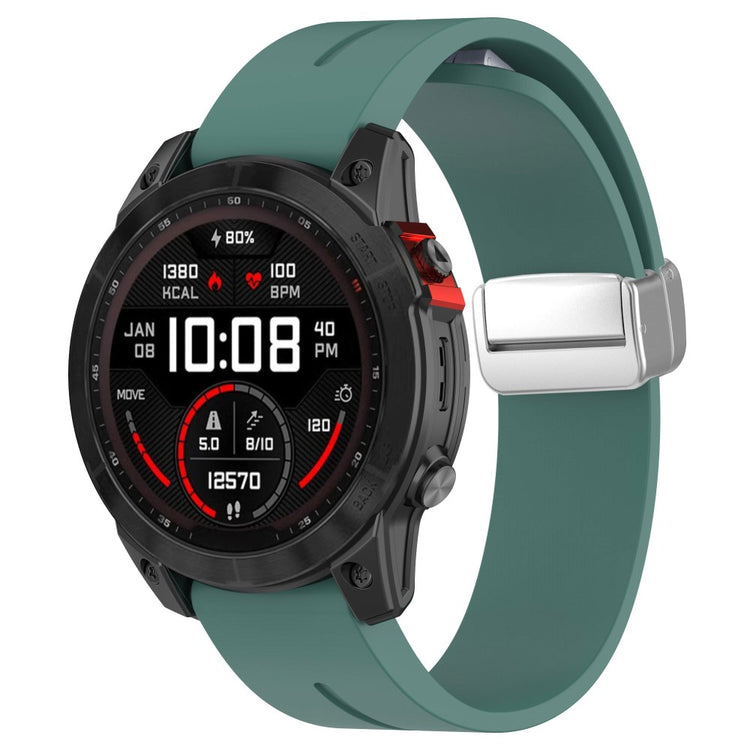 Verleihen Sie Ihrer Smartwatch mit dem 22mm Silikon-Armband für die Modelle Garmin Fenix 7, Forerunner 965, 955, 945 und 935 einen frischen Look. Hergestellt aus hochwertigem Silikon, bietet dieses Armband einen außergewöhnlichen Tragekomfort und lässt sich mühelos mit Ihrem täglichen Outfit kombinieren. Die hautfreundlichen Materialien sind allergikerfreundlich und garantieren eine unbedenkliche Nutzung, ohne die Haut zu schädigen. Das praktische Faltverschlussdesign ermöglicht ein einfaches An- und Ablegen der Uhr und macht es zum idealen Ersatz für Ihr altes, defektes Armband. Ob bei der Arbeit oder in der Freizeit, dieses Armband ist für jeden Anlass sowohl für Frauen als auch für Männer geeignet. Außerdem wird das Armband mit den notwendigen Werkzeugen geliefert, sodass Sie es in Sekundenschnelle installieren und wechseln können. Optimieren Sie Ihre Smartwatch-Erfahrung und investieren Sie in Qualität und Stil mit diesem zeitgemäßen Armband!