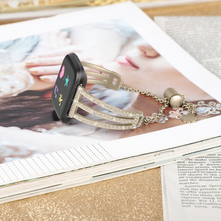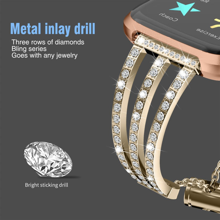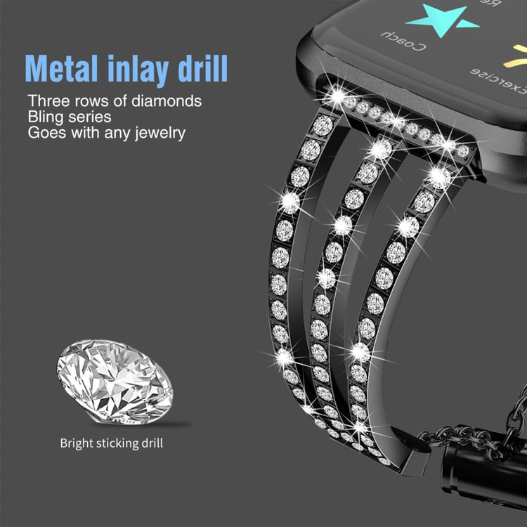 Dieses elegante Metall-Armband mit einem 3-reihigen Strass-Design verleiht Ihrer Fitbit Versa 2/Versa Lite einen Hauch von Glanz und Glamour. Die funkelnden Strasssteine sorgen für einen wunderschönen, schimmernden Look.