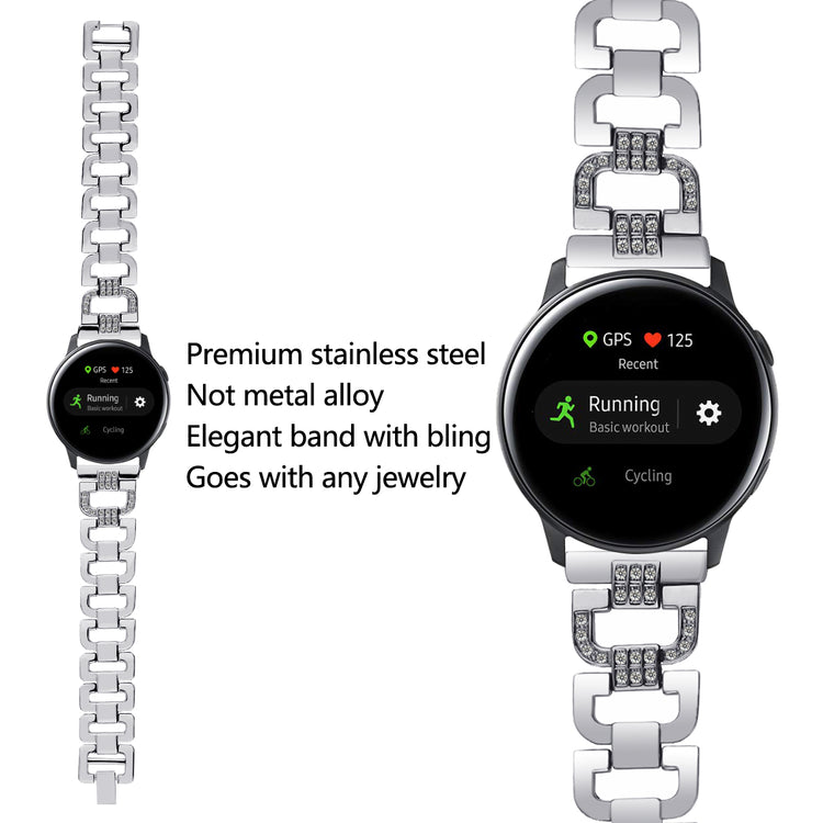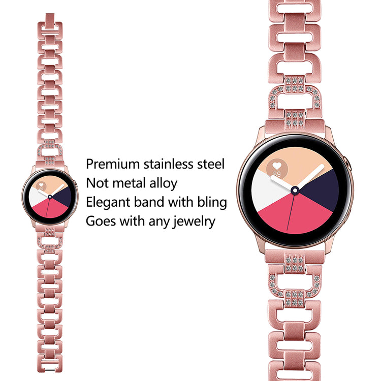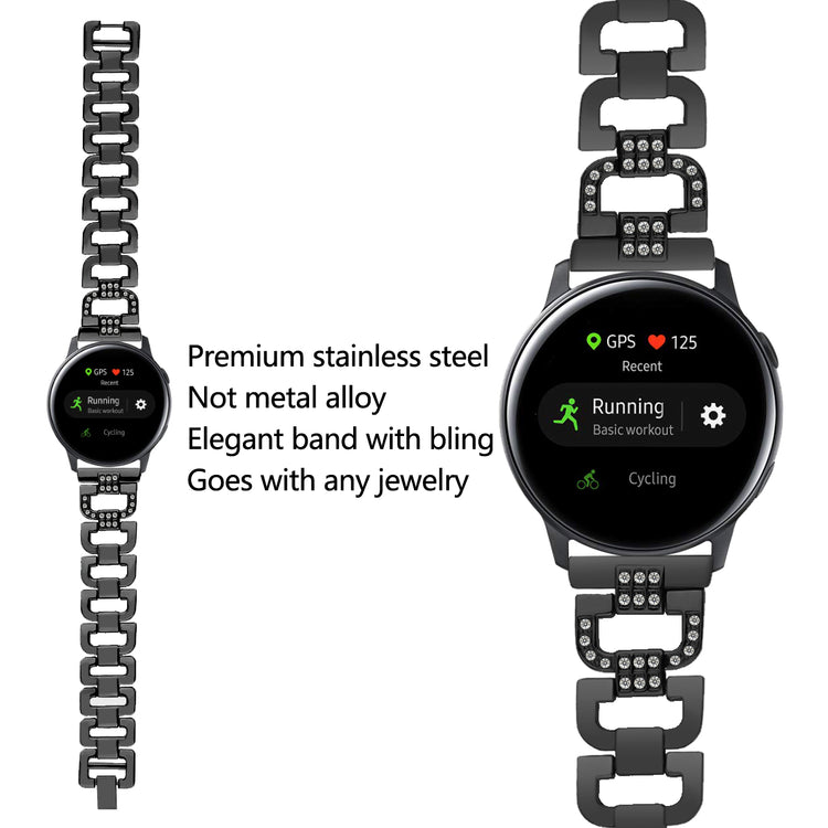 Dieses Uhrenarmband aus Edelstahl verleiht Ihrer Smartwatch mit seinem D-förmigen Kettenglieder-Design und funkelnden Strasssteinen einen Hauch von Luxus. Das ergonomische Design sorgt für optimalen Tragekomfort. Die praktische Schließe ermöglicht ein einfaches An- und Ablegen.