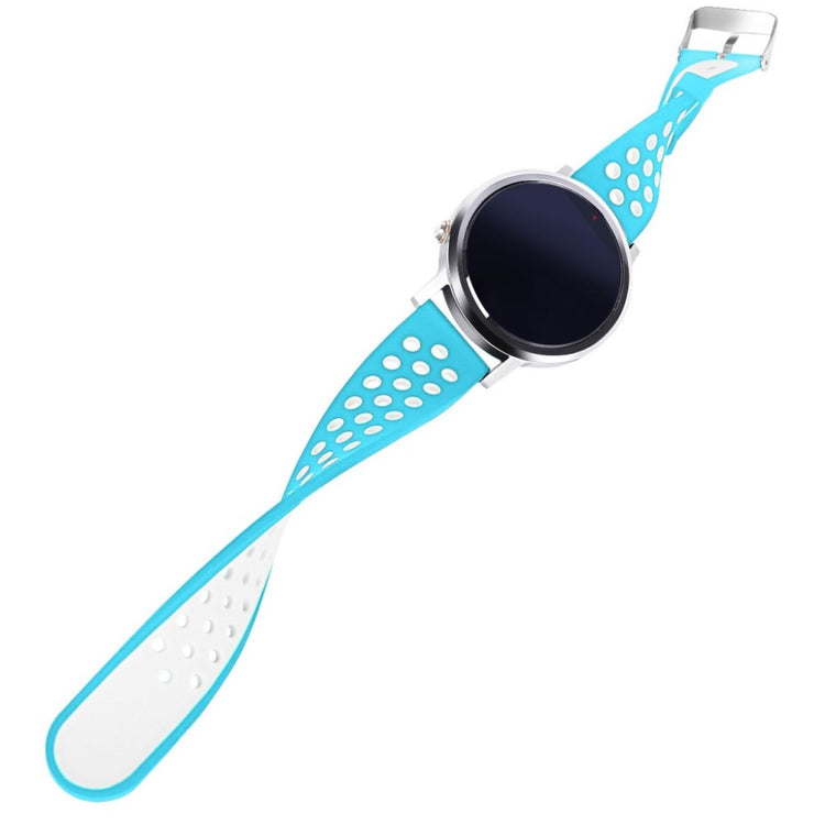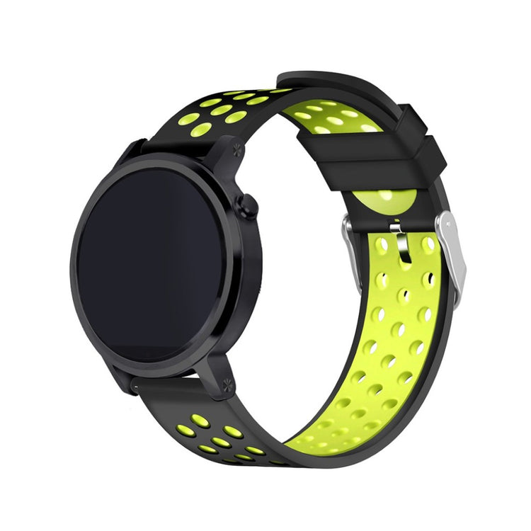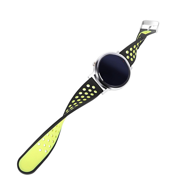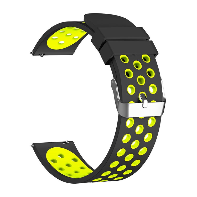 Dieses zweifarbige Uhrenarmband verleiht Ihrer Smartwatch einen modernen Look. Hergestellt aus weichem Silikon mit Luftlöchern, bietet es hohen Tragekomfort und optimale Wärmeableitung. Der klassische Metallverschluss sorgt für einen sicheren Halt und verhindert ein Abrutschen.