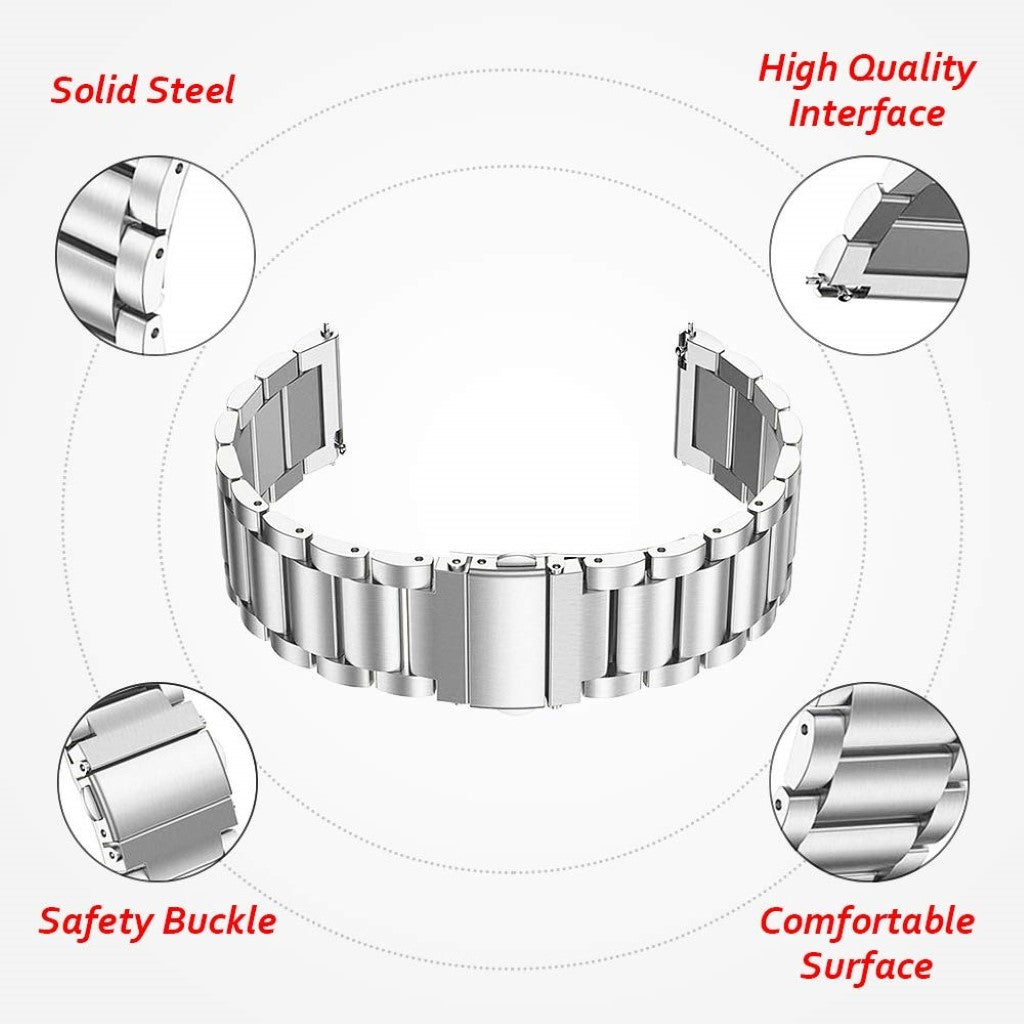 Verleihen Sie Ihrer Smartwatch einen edlen Look mit diesem robusten und strapazierfähigen Edelstahl-Armband. Individualisieren Sie Ihre Uhr und passen Sie die Länge präzise an Ihr Handgelenk an. Die schnelle und einfache Befestigung ermöglicht einen unkomplizierten Wechsel.