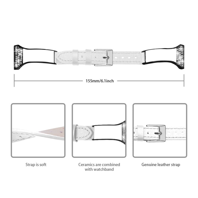 Entscheiden Sie sich für das Ceramic+Echtes Leder Strass Dekor Verstellbare Armband, um Ihrer Fossil Gen 5 Julianna eine elegante Note zu verleihen. Hergestellt aus hochwertigem Oberschicht-Rindsleder, bietet dieses Armband nicht nur eine komfortable Passform, sondern strahlt auch Stil und Raffinesse aus. Die Kombination aus Keramikmaterial und funkelnden Strasssteinen macht dieses Armband zu einem einzigartigen Accessoire, das sich von anderen abhebt. Der polierte Edelstahlverschluss ermöglicht eine einfache Anpassung der Größe, sodass das Tragen nie unbequem wird. Ob als idealer Ersatz für ein altes oder defektes Armband oder einfach, um Ihrem Look einen Hauch von Glamour zu verleihen – dieses Armband ist die perfekte Wahl. Zudem lässt es sich mühelos installieren und entfernen, wodurch es äußerst praktisch ist. Investieren Sie in dieses exklusive Armband und genießen Sie den Komfort und die Eleganz, die es mit sich bringt!