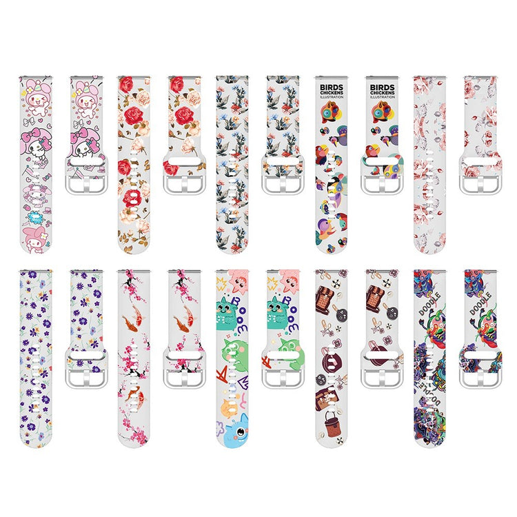 Dieses hochwertig produzierte Silikon-Uhrenarmband ist für die Samsung Galaxy Watch3 45mm, Huawei Watch GT 3 Pro 46mm und Garmin Venu 2 geeignet und sorgt für hochwertigen Tragekomfort. Das Armband ist mit einem schönen Muster bedruckt, um Ihre Uhr individuell zu gestalten und verschiedenen Mode-Stilen anzupassen. Mit einem stabilen Aluminiumverschluss und 10 einstellbaren Löchern lässt sich das Armband perfekt an Ihre Handgelenkgröße anpassen.
