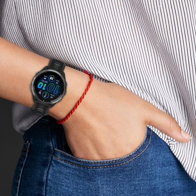 Die Siliconuhrband mit Twill-Textur ist die perfekte Wahl für alle, die Komfort und Stil gleichzeitig suchen. Hergestellt aus hochwertigem Silikon, bietet dieses Uhrenarmband ein angenehmes Tragegefühl und lässt sich mühelos mit Ihren täglichen Outfits kombinieren. Es ist nicht nur hautfreundlich und allergiefrei, sondern auch mit einer langlebigen Uhrenbuckle aus Premium-Material ausgestattet, die für eine lange Lebensdauer sorgt. Dank des innovativen Designs mit mehreren Löchern lässt sich das Armband einfach an Ihr Handgelenk anpassen, sodass Sie immer den perfekten Sitz genießen können. Dieses Armband ist eine ausgezeichnete Wahl als Ersatz für Ihr altes oder beschädigtes Modell und eignet sich sowohl für berufliche als auch für Freizeitaktivitäten. Wählen Sie das ideale Zubehör für Ihren Garmin und bringen Sie frischen Wind in Ihren Look!