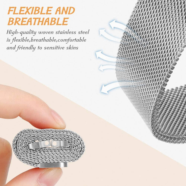 Das JLT Durable Magnetic Absorption Design Ersatzarmband aus hochwertigem Edelstahl ist elegant und besonders langlebig. Es lässt sich individuell an den Handgelenksumfang von 14 bis 22 cm anpassen und sorgt dank des magnetischen Verschlusssystems für einen sicheren Sitz. Ideal als Ersatz für Ihr altes, beschädigtes Armband und kompatibel mit zahlreichen Smartwatches.