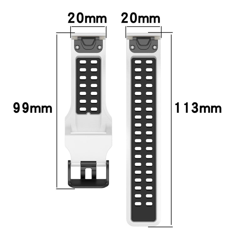 Entdecken Sie das ideale Accessoire für Ihre Smartwatch mit unserem Doppel-Farben-Uhrenarmband aus hochwertigem Silikon, das speziell für Garmin Descent Mk2s, D2 Delta S, Fenix 7S, 6S und 5S entwickelt wurde. Dieses Armband bietet nicht nur einen komfortablen Sitz und ist leicht mit Ihrer täglichen Garderobe zu kombinieren, sondern zeichnet sich auch durch seine hautfreundlichen Eigenschaften aus, sodass es keine Allergien auslöst. Der Premium-Verschluss sorgt für Langlebigkeit und Stabilität. Dank des vielfältigen Locher-Designs können Sie die Größe mühelos anpassen, während das Armband eine perfekte Alternative für alte oder defekte Bänder darstellt. Es ist vielseitig einsetzbar und eignet sich ideal für berufliche, freizeitliche oder tägliche Anlässe für Frauen und Männer. Gönnen Sie Ihrer Smartwatch das Upgrade, das sie verdient, und wählen Sie aus einer breiten Palette von Designs, um Ihren persönlichen Stil zu unterstreichen.