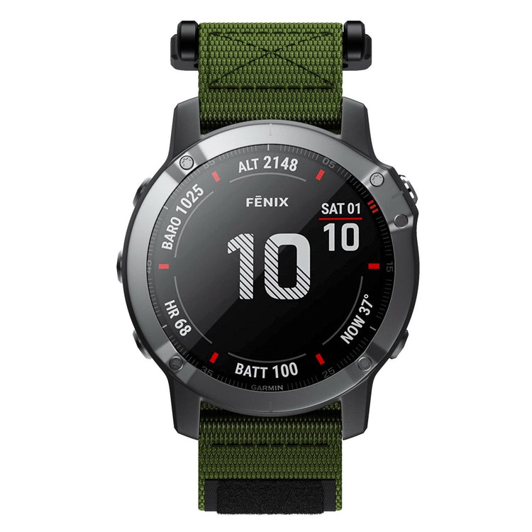 Ersetzen Sie Ihr altes Armband mit diesem verstellbaren Sport-Armband aus strapazierfähigem Nylon, Leder und ABS, das eine belüftete und bequeme Passform bietet. Das praktische Schlaufensystem ermöglicht eine einfache und schnelle Anpassung der Handgelenksgröße und eignet sich ideal für Sport, das Büro und den täglichen Gebrauch. Kompatibel mit einer Vielzahl von Garmin Smartwatches, ist dies die perfekte Wahl für alle, die Stil und Funktionalität suchen.