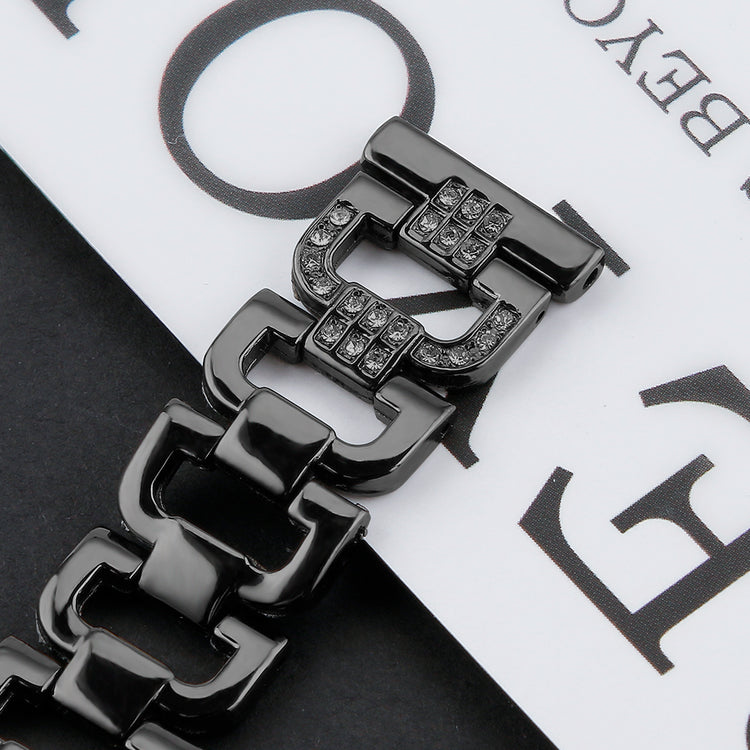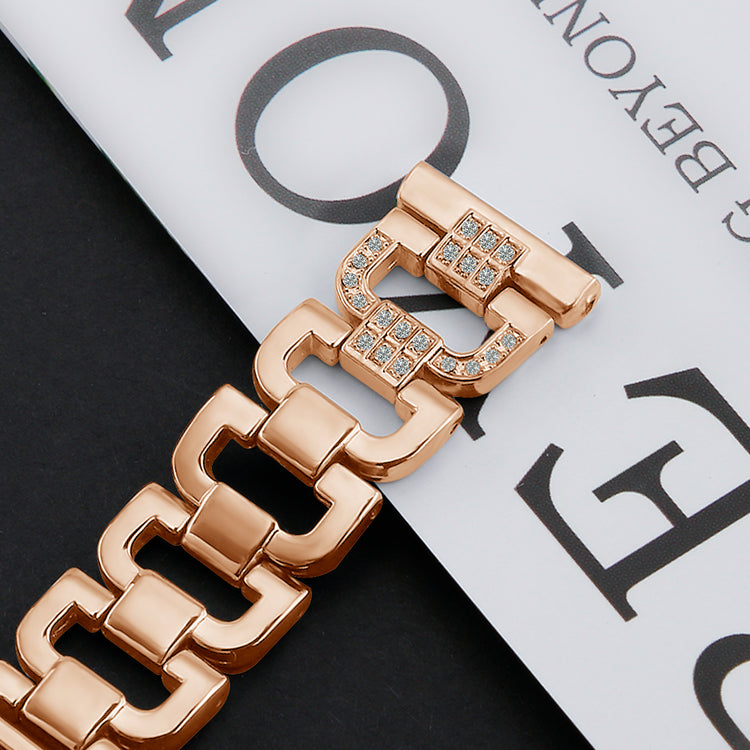 Dieses Armband aus Edelstahl mit 20 mm Anschlussbreite verleiht Ihrer Smartwatch einen Hauch von Luxus. Das D-förmige Gliederdesign sorgt für einen eleganten Look und die funkelnden Strasssteine setzen zusätzliche Akzente. Das ergonomische Design garantiert einen hohen Tragekomfort. Die praktische Schließe lässt sich einfach bedienen und ermöglicht ein schnelles An- und Ablegen des Armbandes.