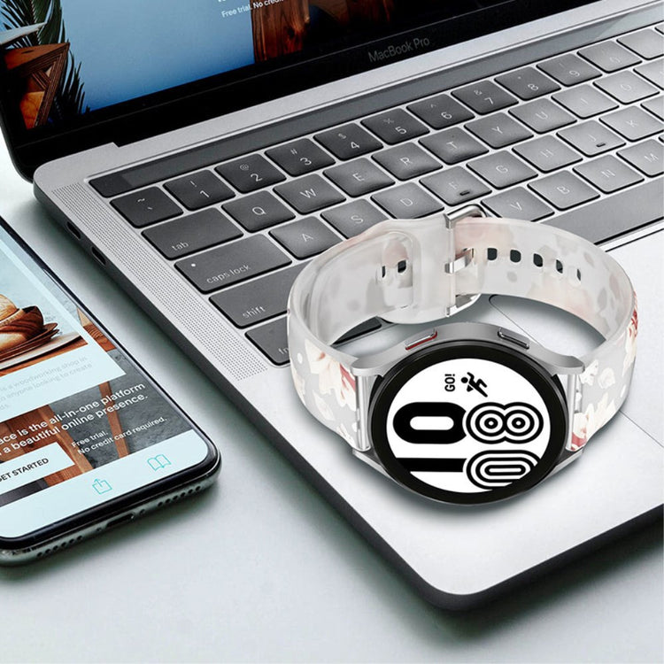 Dieses 20mm Musterbedruckte Uhrenband aus Silicone ist widerstandsfähig und bietet optimalen Tragekomfort. Mit einer klassischen Metallschnalle, die ein Verrutschen verhindert, und anpassbaren Löchern für verschiedene Handgelenkgrößen, ist es die perfekte Ersatzlösung für Ihr altes, beschädigtes Band. Kompatibel mit einer Vielzahl von Smartwatches, darunter Samsung Galaxy Watch4 und Garmin Forerunner 645, ist dieses Band der ideale Begleiter für Ihr modernes Leben.