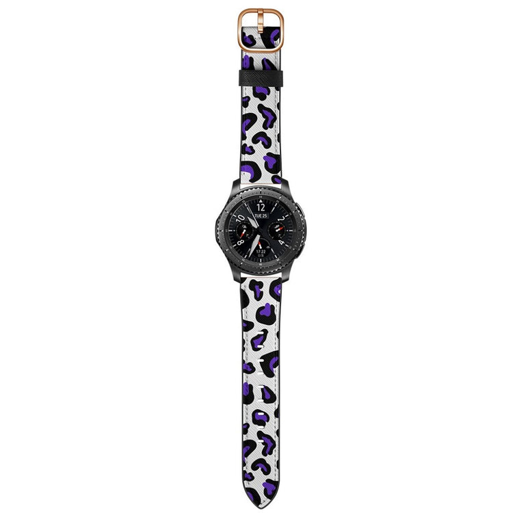 22mm Universal stylish genuine leather watch strap - Purple Leopard Print#serie_4