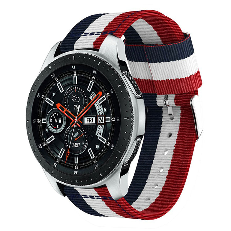 Verleihen Sie Ihrer Samsung Galaxy Watch 46mm mit diesem verstellbaren Nylon-Ersatzarmband einen frischen Look! Der einzigartige vertikale Streifenmuster-Design macht Ihre Smartwatch nicht nur stilvoll, sondern auch zu einem echten Hingucker. Hergestellt aus strapazierfähigem Nylon-Gewebe bietet dieses Armband nicht nur Langlebigkeit, sondern auch komfortablen Tragekomfort. Die verstellbare Größe ermöglicht es Ihnen, das Armband ganz nach Ihrem Handgelenk anzupassen – ideal für maximalen Tragekomfort bei verschiedenen Aktivitäten. Mit einem Handgelenksumfang von 135mm bis 205mm und einer geeigneten Breite von 22mm ist es kompatibel mit einer Vielzahl von Modellen, darunter nicht nur die Samsung Galaxy Watch, sondern auch viele andere beliebte Smartwatches wie die Huami Amazfit und LG G Watch. Finden Sie die perfekte Alternative für Ihr ursprüngliches Armband und bringen Sie Ihren persönlichen Stil zum Ausdruck! Dieses Armband ist die beste Wahl, um Ihre Smartwatch individuell zu gestalten und gleichzeitig den Alltag zu bereichern.
