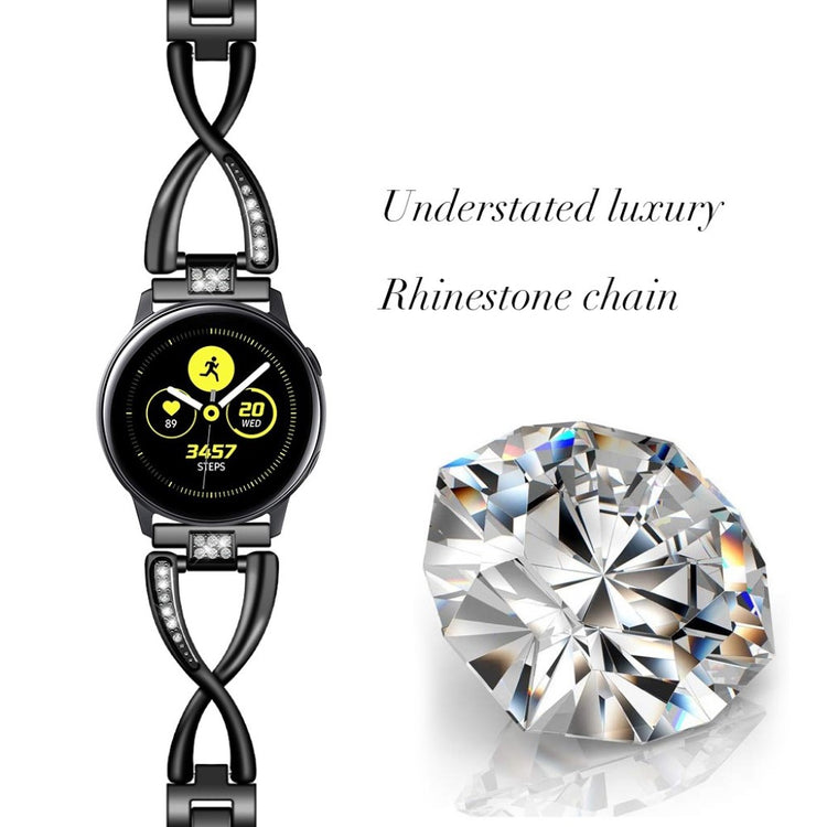 Dieser 20mm X-förmige Aluminiumlegierungs-Diamantuhrenarmband ist der perfekte Begleiter für Ihre Samsung Galaxy Watch 42mm. Aus hochwertigem Aluminiumlegierungsmaterial gefertigt, bietet er ein langlebiges und elegantes Design mit attraktivem Rhinestone-Dekor, das Ihre Uhr aufwertet. Der Armband ist sweat-proof, atmungsaktiv und allergiefrei und stellt eine großartige Alternative für ein beschädigtes oder unbrauchbares Armband dar.