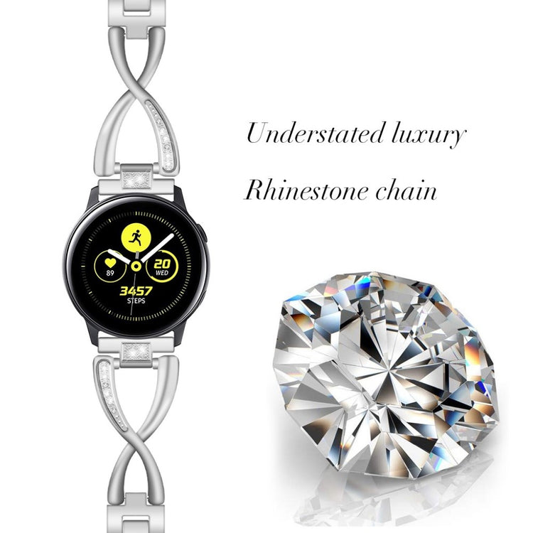 Verleihen Sie Ihrer Smartwatch mit dem 20mm X-Shape Aluminium-Legierung Diamant-Uhrenband für die Samsung Galaxy Watch 42mm einen Hauch von Eleganz und Stil. Hergestellt aus hochwertigem Aluminium-Legierungsmaterial, ist dieses Armband nicht nur haltbar, sondern auch hochwertig im Design. Das ausgefallene X-Shape-Design, verziert mit strahlenden Rhinestones, sorgt dafür, dass Sie garantiert die Blicke auf sich ziehen. Das Armband ist außerdem sweat-proof, atmungsaktiv und allergiefrei, was hohen Tragekomfort gewährleistet. Personalisieren Sie Ihre Uhr mit diesem raffinierten Armband, das eine ausgezeichnete Alternative zu einem kaputten oder unbenutzbaren ist. Mit einer Länge von 171mm und einer Breite von 20mm, passt es perfekt an Handgelenke mit einem Umfang von bis zu 190mm. Steigern Sie Ihr Smartwatch-Erlebnis und setzen Sie auf ein Accessoire, das sowohl Funktionalität als auch Stil vereint!