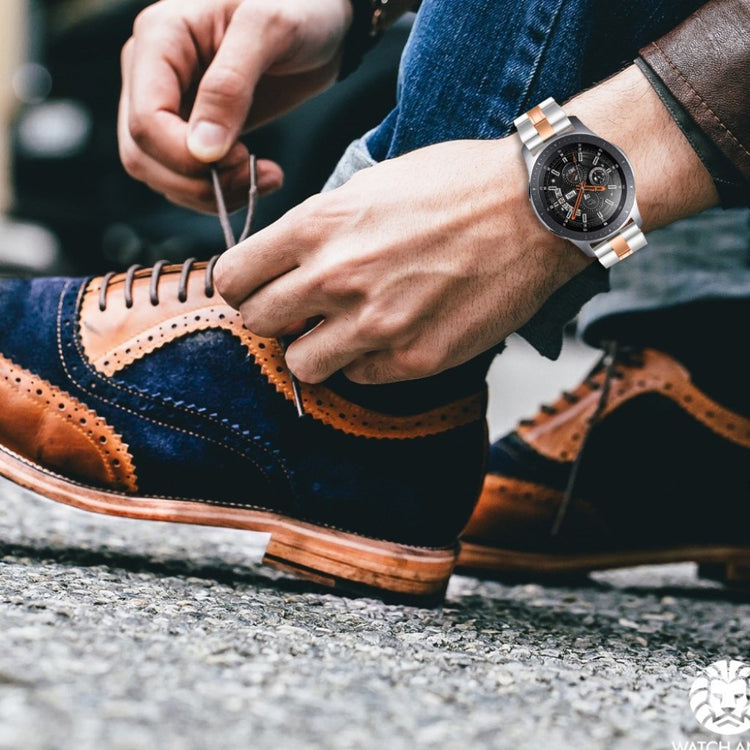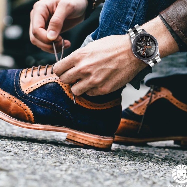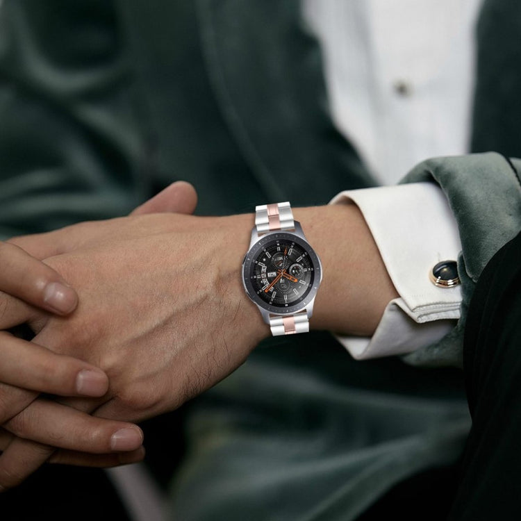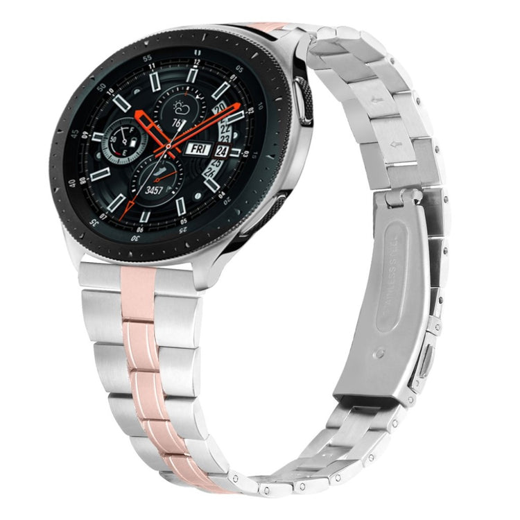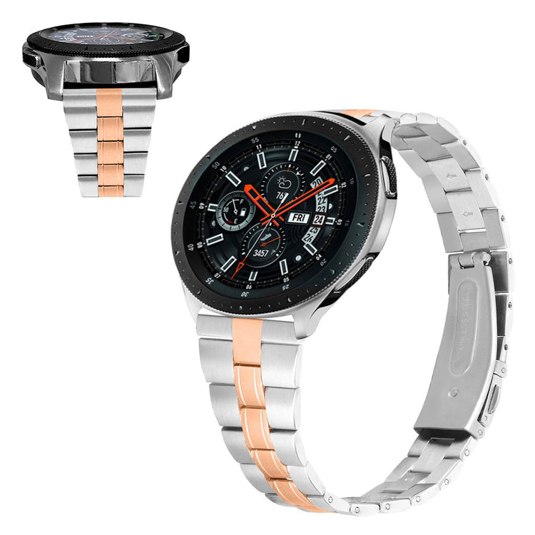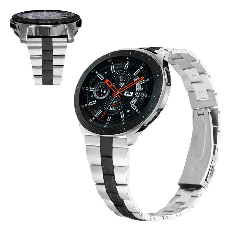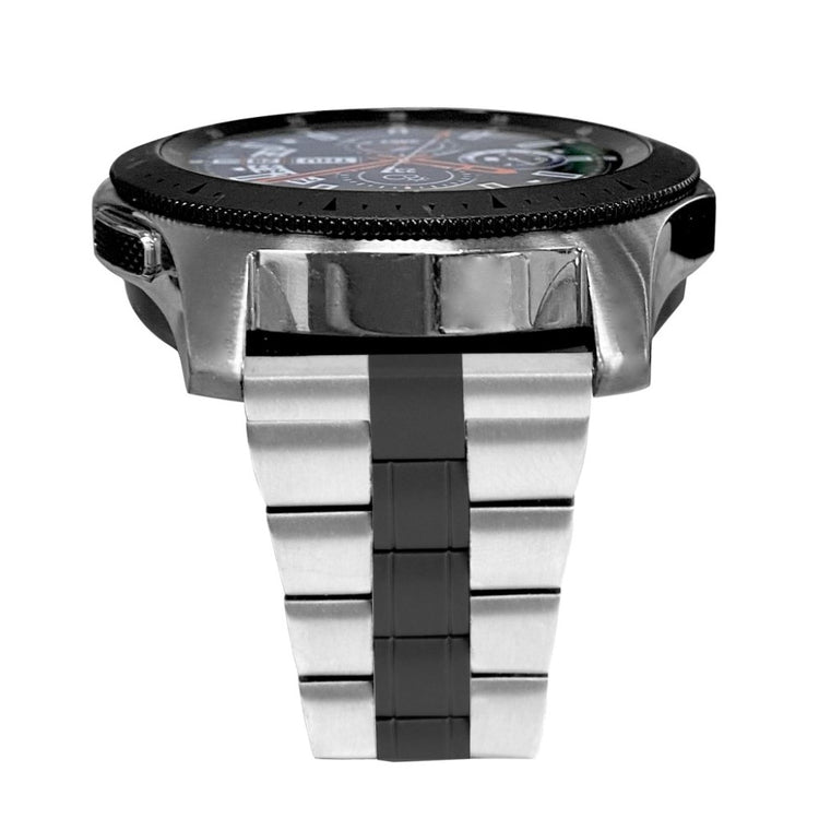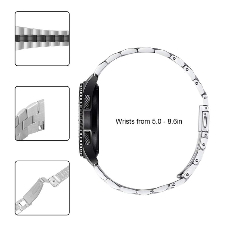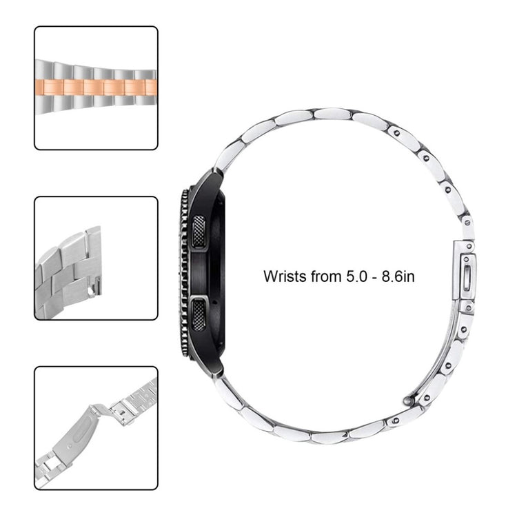 Entscheiden Sie sich für unser Edelstahl-Armband mit Drei-Perlen-Schnalle als ideale Ergänzung für Ihre Samsung Galaxy Watch 46mm oder Gear S3 Classic/Frontier. Hergestellt aus hochwertigem Edelstahl, bietet dieses Armband nicht nur eine exquisite Verarbeitung, sondern strahlt auch Moderne und Luxus aus. Die moderate Weichheit sorgt für einen angenehmen Tragekomfort, sodass Sie es problemlos den ganzen Tag tragen können. Es ist die perfekte Armband-Ergänzung für Ihr altes, beschädigtes Modell und garantiert eine elegante Aufwertung Ihres Smartwatches. Mit einer Länge von 184 mm und einer Breite von 22 mm passt es optimal für Handgelenke mit einem Umfang von 5,0 bis 8,6 Zoll. Gönnen Sie sich dieses erstklassige Zubehör und verleihen Sie Ihrer Uhr einen Hauch von Stil und Klasse!