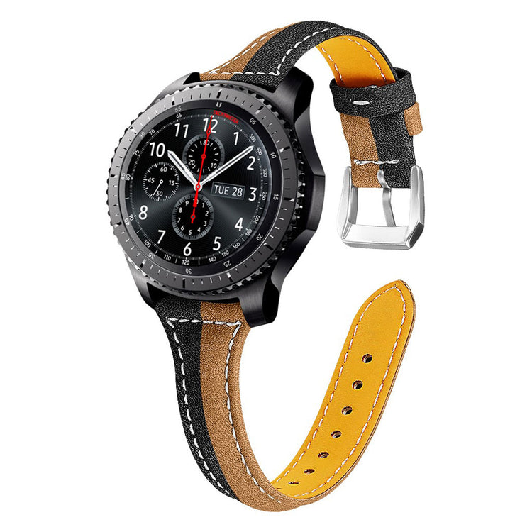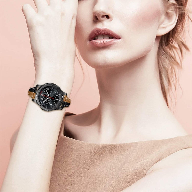 Das modische Echtem Leder 22mm Armband ist die perfekte Ersatzoption für Ihre Samsung Gear S3 Frontier oder S3 Classic. Hergestellt aus hochwertigem, dünnem Echtem Leder, bietet es allergiefrei und komfortabel beim Tragen, während die Edelstahl-Schnalle ein einfaches Anlegen und Abnehmen ermöglicht. Mit anpassbaren Löchern im Band können Sie die Größe ganz einfach anpassen, um den idealen Sitz zu gewährleisten.