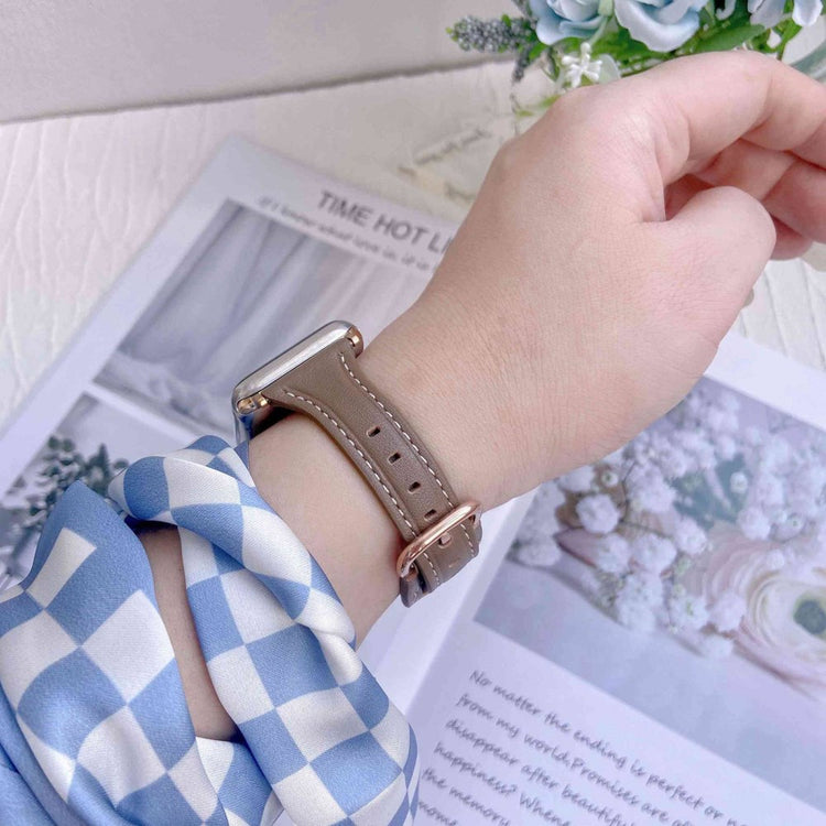 Entscheiden Sie sich für dieses hochwertige T-förmige Uhrenarmband aus echtem Leder für Ihre Apple Watch Series 9 / 8 / 7 41mm / 6 / 5 / 4 / SE (2023) / SE (2022) / SE 40mm / 3 / 2 / 1 38mm und erleben Sie den Unterschied! Das Armband ist aus weichem und komfortablem Material gefertigt, was es angenehm zu tragen macht - ideal für den täglichen Gebrauch. Dank des Sprengschloss-Designs ist die Größe leicht anpassbar und ermöglicht einen optimalen Sitz. Mit den zahlreichen Löchern und dem doppelten Niet-Design können Sie die Größe mühelos an Ihre Bedürfnisse anpassen. Dieses Armband ist die perfekte Ersatzlösung für Ihr altes oder beschädigtes Armband und bietet Ihnen sowohl Stil als auch Funktionalität. Genießen Sie ein Produkt, das für Handgelenke mit einem Umfang von 150-220mm geeignet ist und sich durch seine komfortable Länge von 108+98mm auszeichnet.