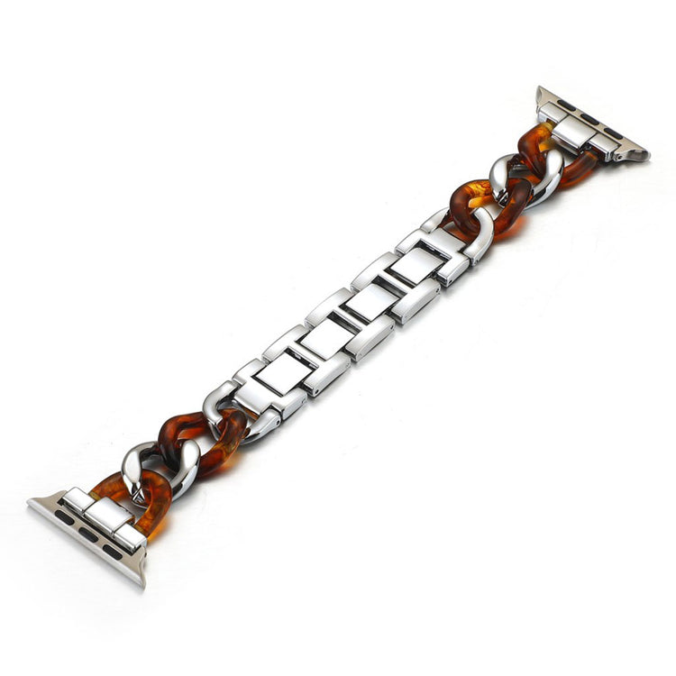 Dieses Cowboy-Kettenarmband aus Resin und Metall verleiht Ihrer Apple Watch einen einzigartigen Look. Das hochwertige Material ist strapazierfähig und langlebig. Das ergonomisch geformte Armband liegt weich und angenehm am Handgelenk.