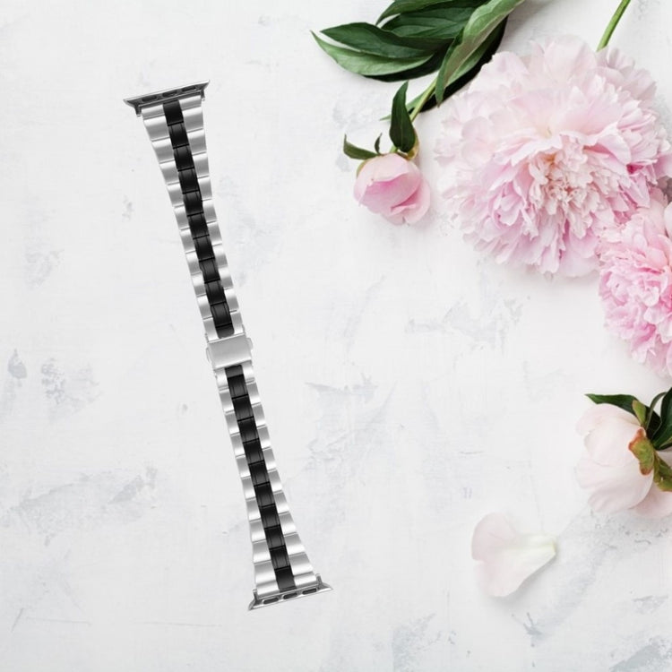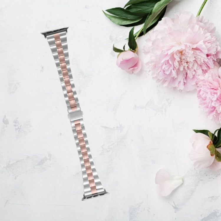 Der Drei-Perlen-Schnallen-Edelstahl-Uhrenarmband-Ersatz für die Apple Watch ist die ideale Wahl für alle, die Stil und Qualität schätzen. Hergestellt aus hochwertigem Edelstahl, überzeugt dieses Armband durch seine exquisite Verarbeitung, die es zu einem modischen und luxuriösen Accessoire macht. Die mittlere Weichheit sorgt für ein angenehmes Tragegefühl und beste Passform, sodass Sie es auch über längere Zeiträume tragen können. Wenn Ihr altes Armband beschädigt oder unansehnlich geworden ist, ist dieser Ersatz genau das, was Sie benötigen, um Ihre Uhr wieder zum Strahlen zu bringen. Mit einer Länge von 184 mm und einer Breite von 22 mm passt dieses Armband für Handgelenke mit einem Umfang von 5,0 bis 8,6 Zoll. Gönnen Sie sich den Hauch von Eleganz und Funktionalität, den dieses Armband bietet, und werten Sie damit Ihr gesamtes Trageerlebnis Ihrer Apple Watch erheblich auf.