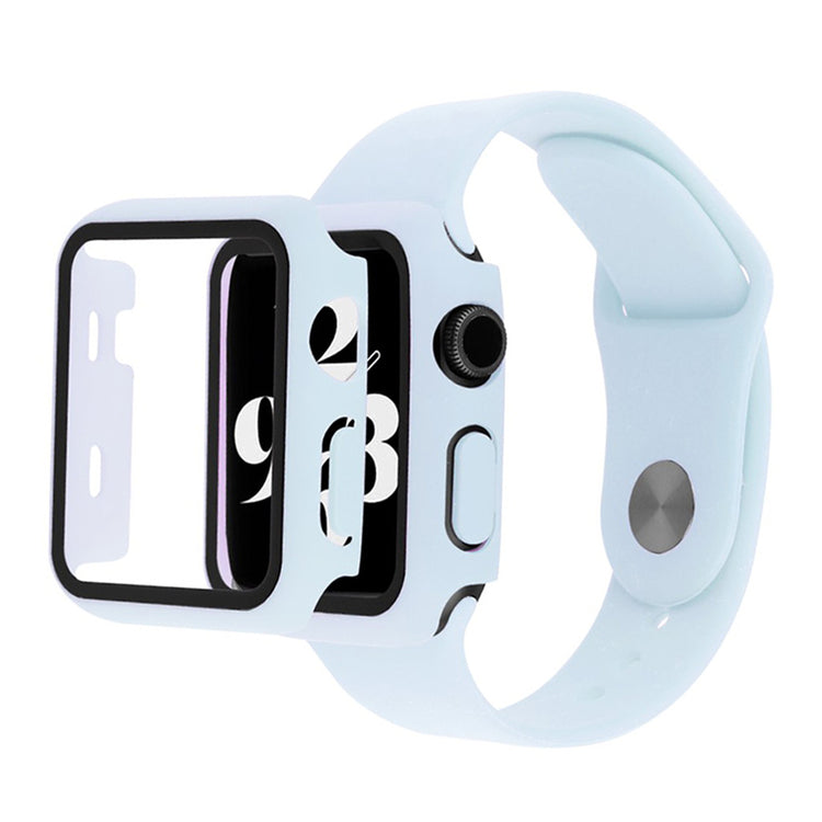 Dieses 3-in-1 Set bietet umfassenden Schutz für Ihre Apple Watch Series 4/5/6/SE (40mm). Es besteht aus einem gehärteten Displayschutz aus Glas, einem stoßfesten Uhrengehäuse und einem komfortablen Armband.