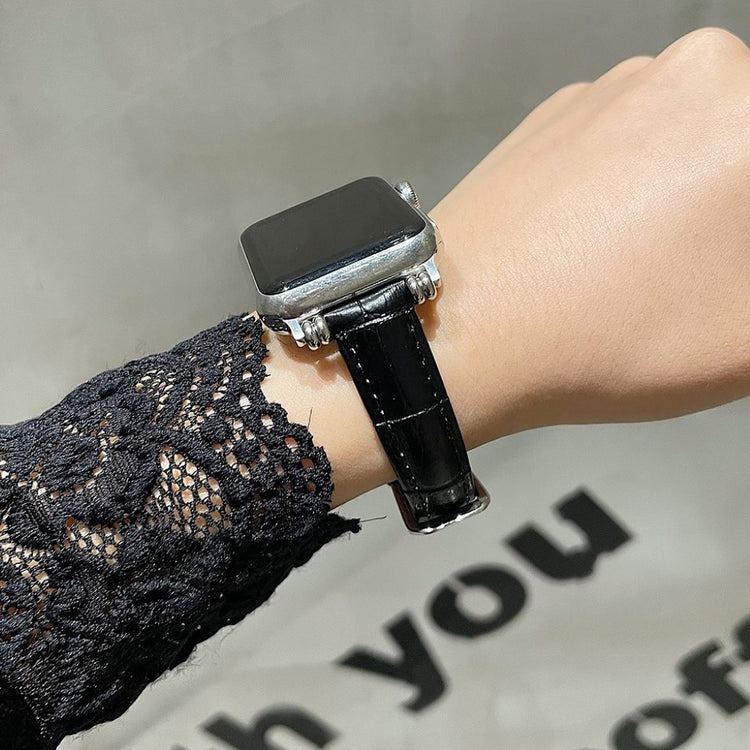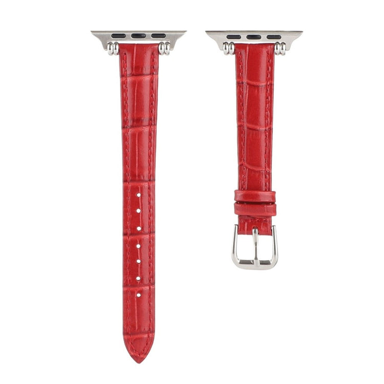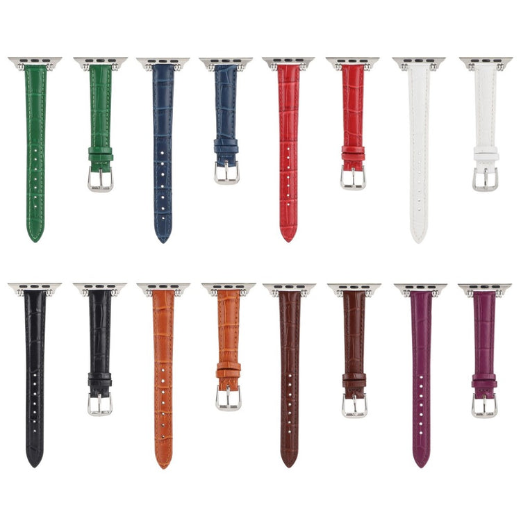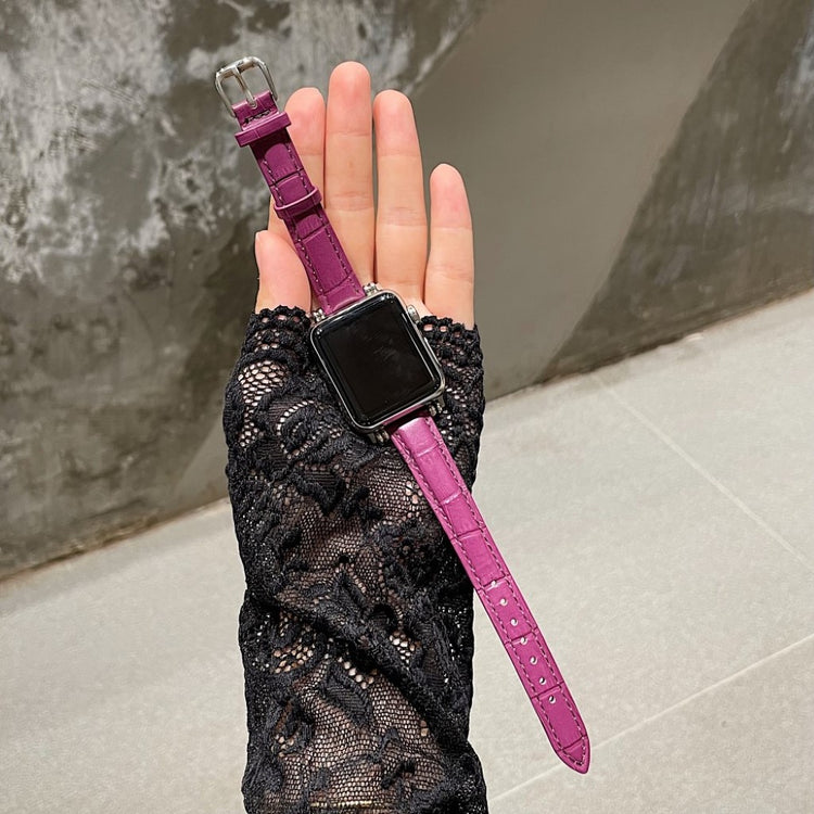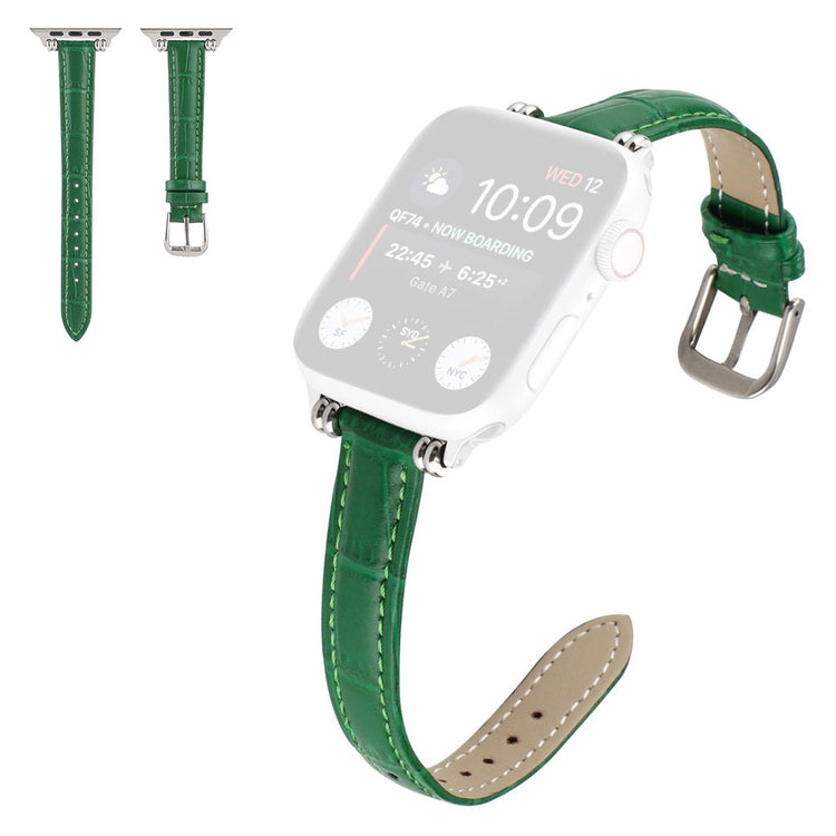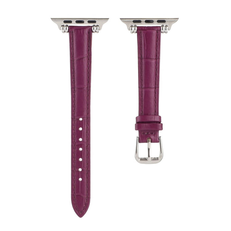 Erleben Sie den ultimativen Komfort mit unserem echtledernen Armband im Krokodilmuster, das für die Modelle Apple Watch Series 7 / 8 41mm, Series 4 / 5 / 6 / SE / SE (2022) 40mm sowie Watch Series 1 / 2 / 3 38mm geeignet ist. Der metallische Schnappverschluss ermöglicht ein einfaches An- und Ablegen, während die verstellbaren Löcher eine individuelle Anpassung an Ihr Handgelenk garantieren. Das Armband ist eine ideale Ersatzlösung für Ihr altes, defektes Armband und steht in mehreren Farben zur Auswahl zur Verfügung, um unterschiedliche Stilbedürfnisse zu erfüllen.