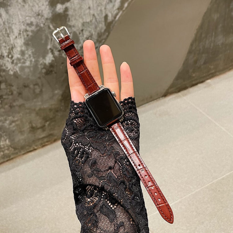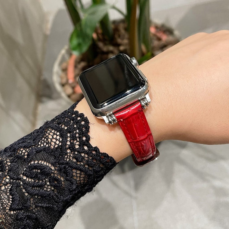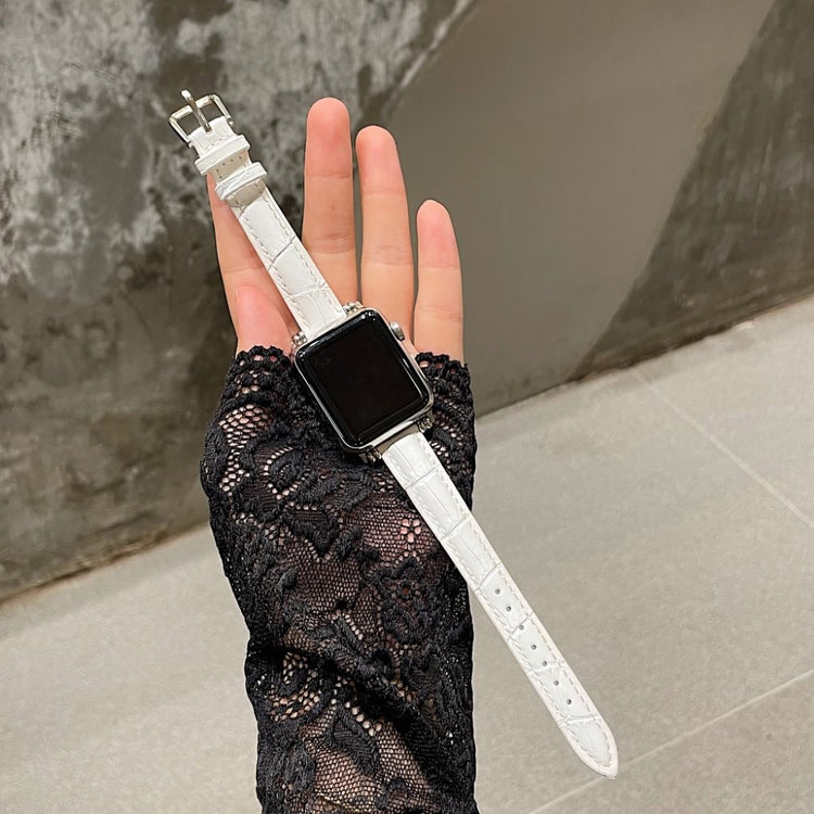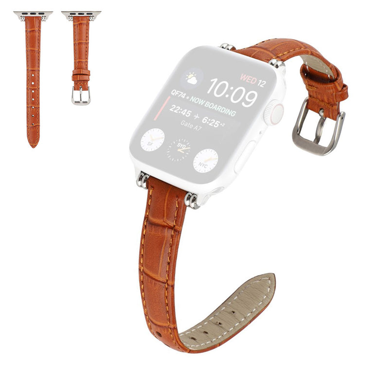 Dieses Uhrenarmband aus echtem Leder im Krokodilmuster-Design verleiht Ihrer Apple Watch einen Hauch von Eleganz und Komfort. Die metallene Schnallenschließe ermöglicht ein einfaches An- und Ablegen. Dank der verschiedenen Löcher im Armband lässt sich die Größe individuell an Ihr Handgelenk anpassen. Eine dekorative Perle rundet das Design stilvoll ab.