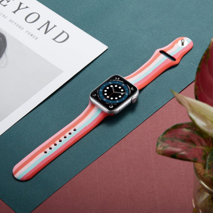 Dieses verstellbare Armband aus Silikon ist die perfekte Ergänzung für Ihre Apple Watch. Das weiche Silikonmaterial ist hautfreundlich und angenehm zu tragen. Das Regenbogendesign verleiht Ihrer Uhr einen stylischen Touch.