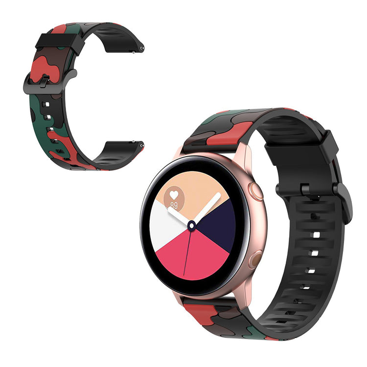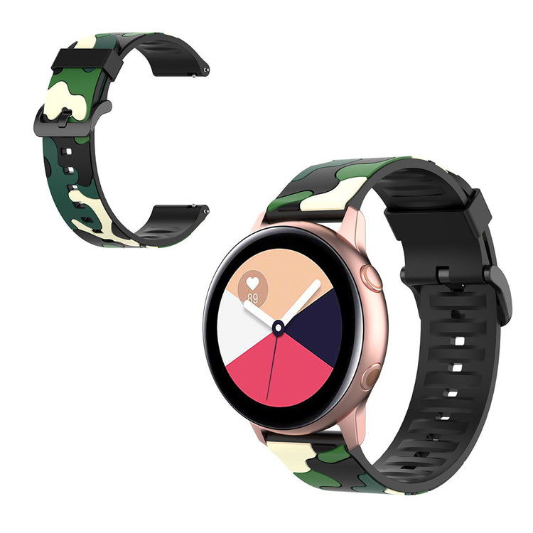 Das 20mm Camouflage Silikon-Uhrenarmband ist die perfekte Ergänzung für Ihre Smartwatch, passend für Modelle wie Samsung Galaxy Active 2 und Garmin Vivoactive 3. Mit einem klassischen Metallverschluss und einem praktischen Design mit mehreren Löchern lässt sich die Größe einfach anpassen. Ideal als Austauscharmband für Ihr altes oder defektes Modell, bietet es sowohl Komfort als auch Stil.