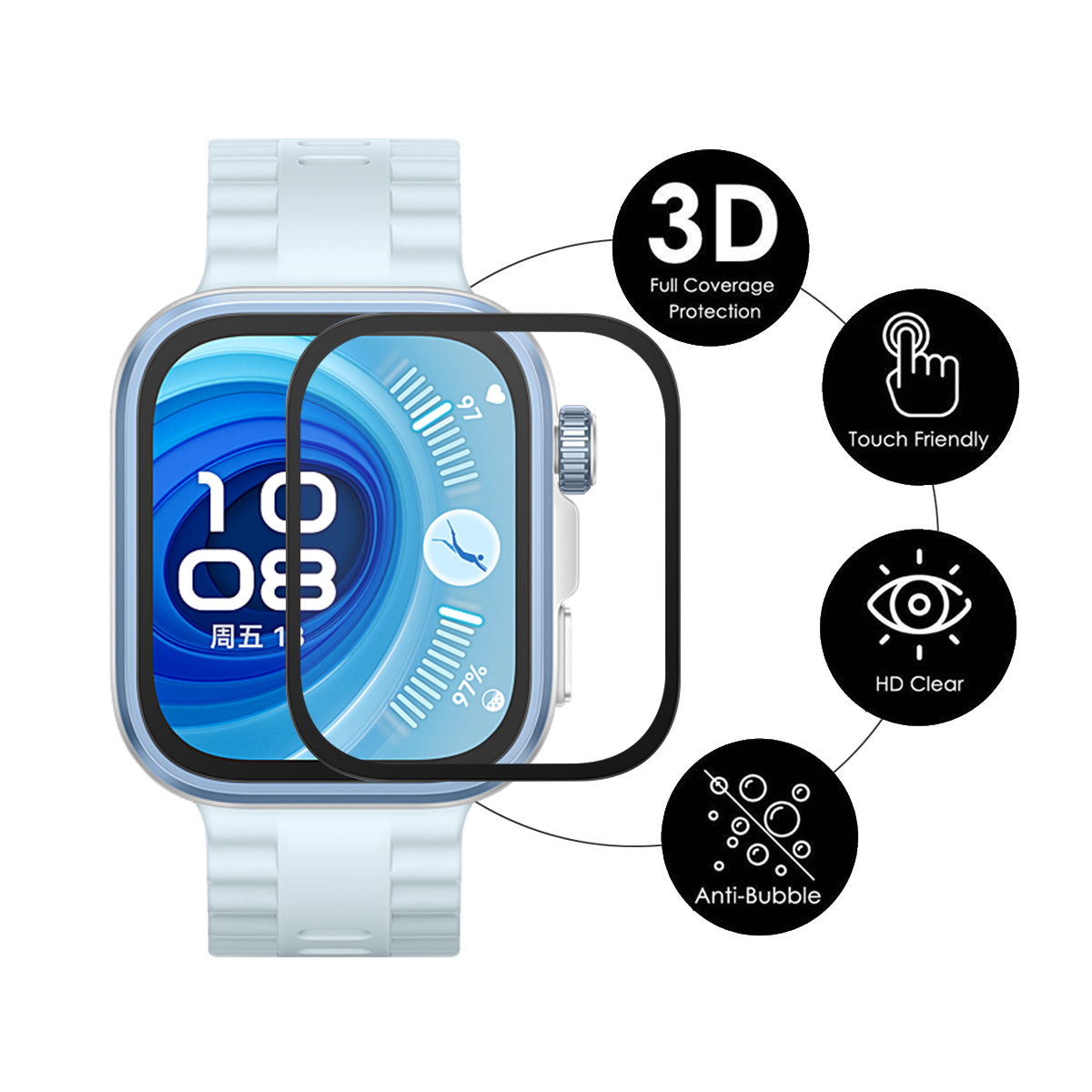 Vermeiden Sie Kratzer auf dem Bildschirm mit einer Schutzfolie für Huawei Watch Fit 4 Pro.Beachte, dass die Uhr nicht enthalten ist.