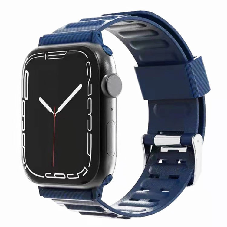 Dieses TPU-Uhrenarmband mit Carbonfaser-Textur ist der perfekte Ersatz für Ihr altes oder defektes Armband. Das weiche TPU-Material ist flexibel und leicht, während das Carbonfaser-Design Ihrer Apple Watch Serie 7 (41mm) einen stylischen Look verleiht.